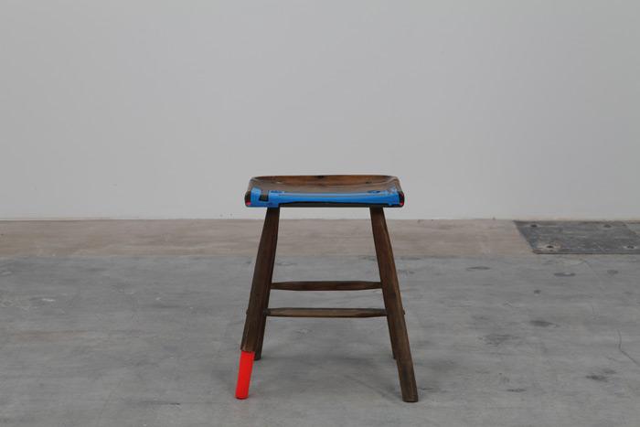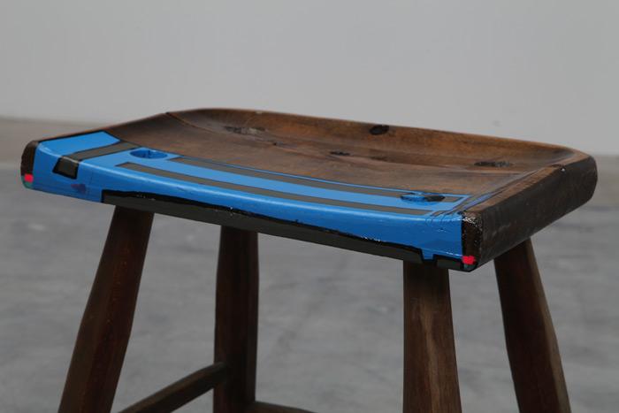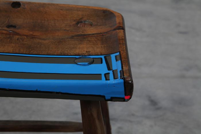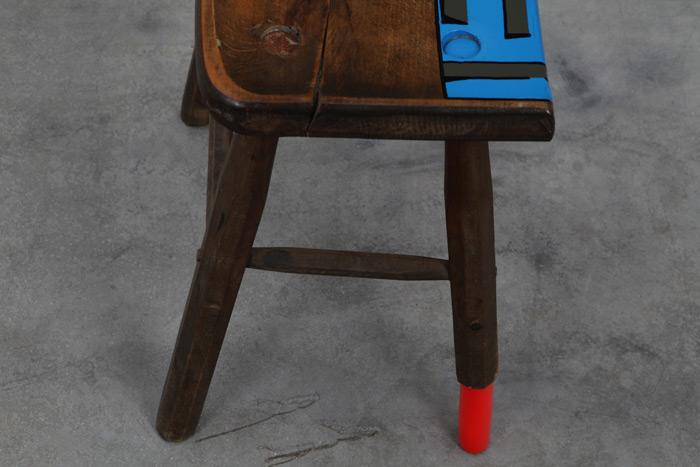 bavarian farmers chair without backrest, spraypainted and multi varnished
