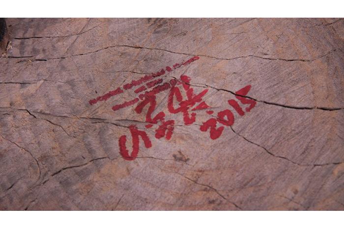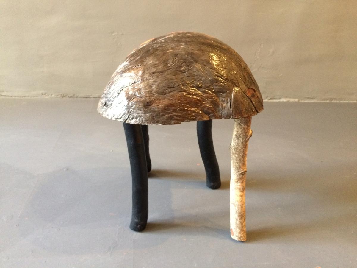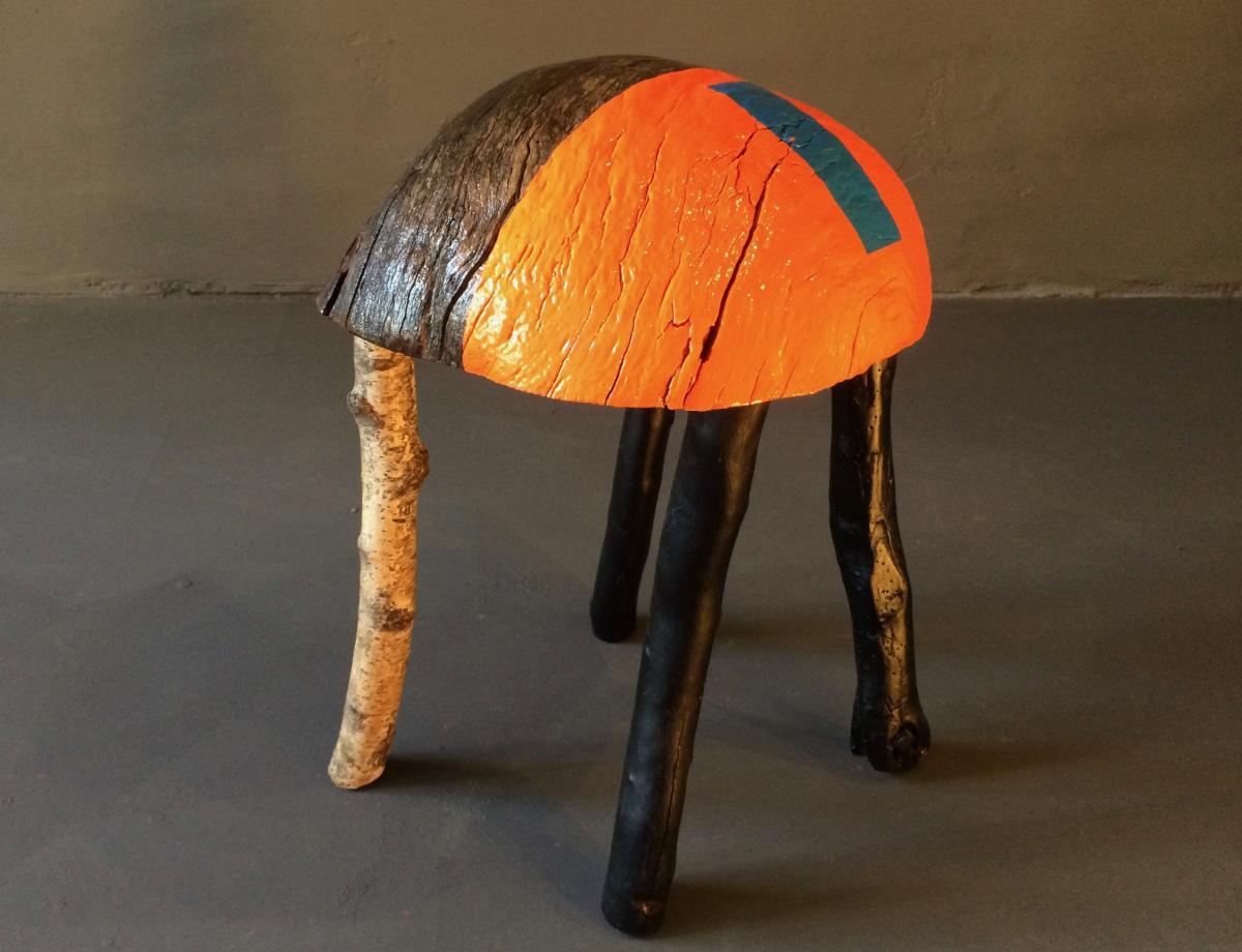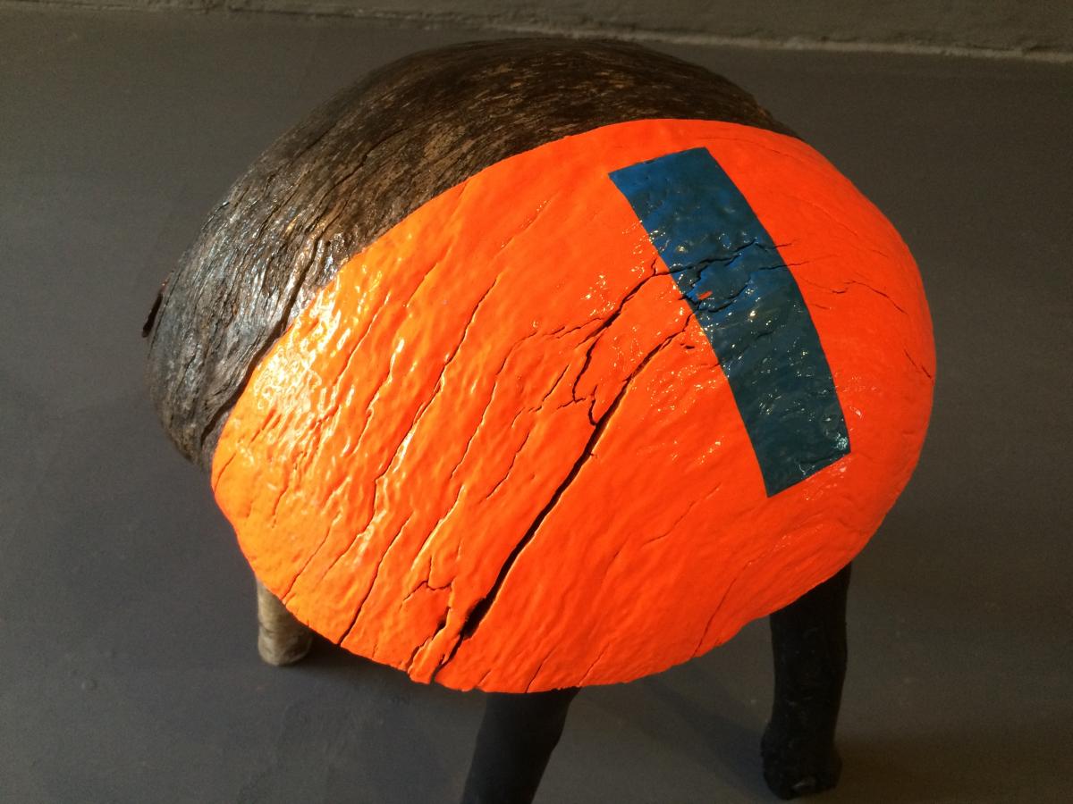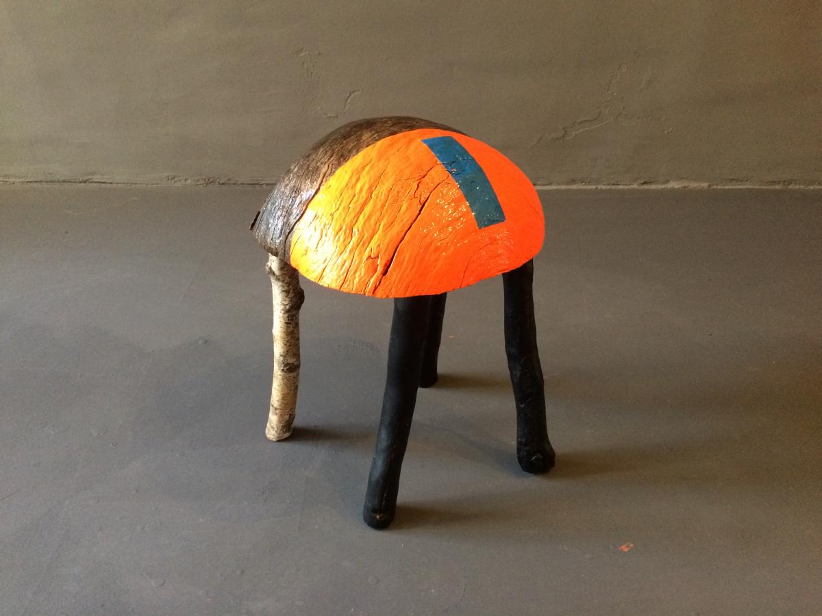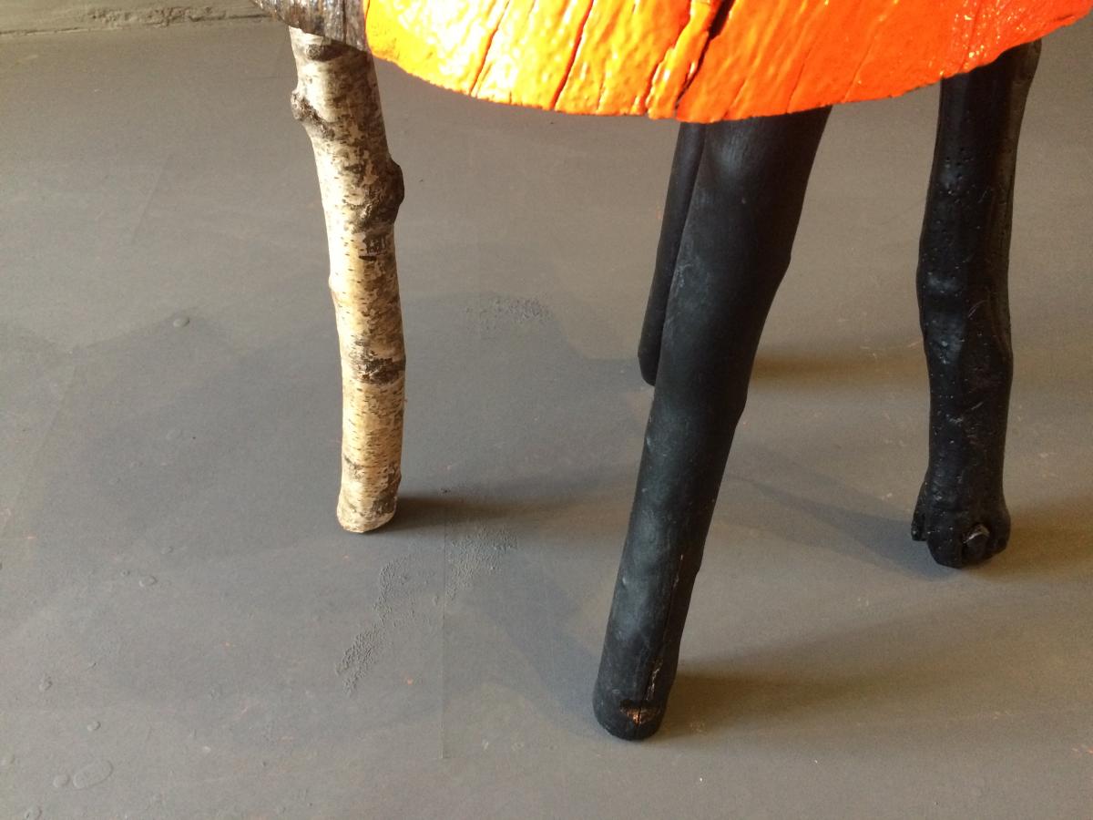 Solid austrian wood root, added birch branchlegs, spraypainted in orange with blue stripe, multi lacquered in high gloss 2K varnish