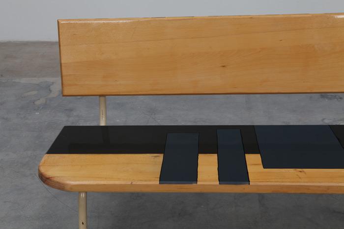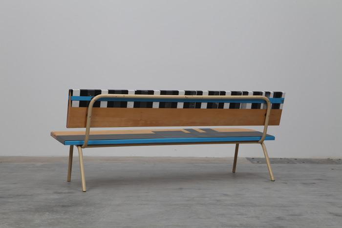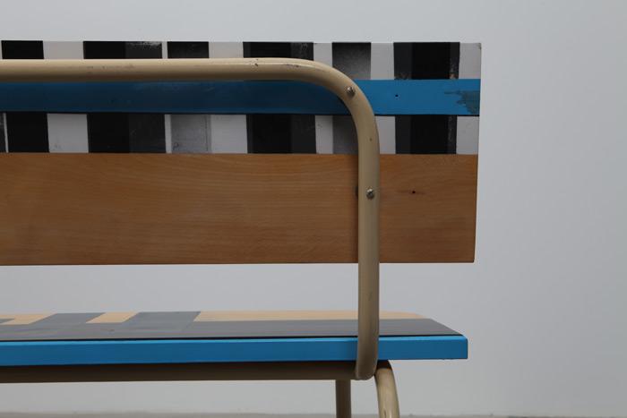 60's bench from a Hamburg courtroom, spraypainted, re-modeled and multi lacquered