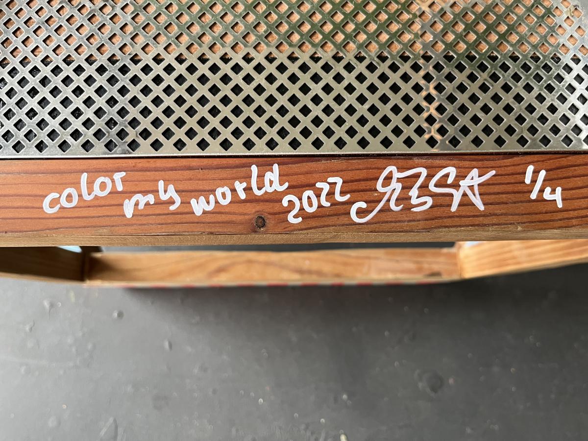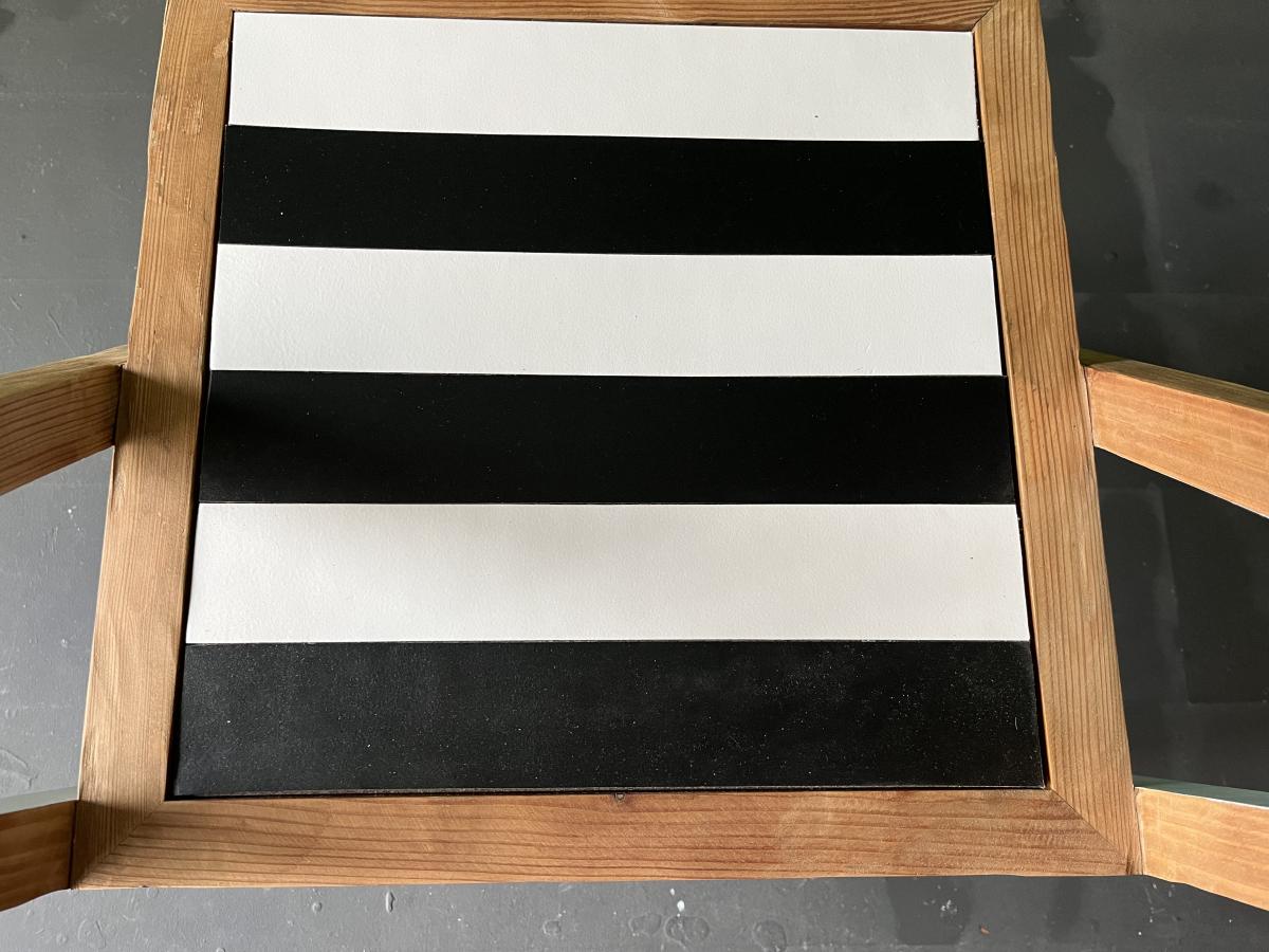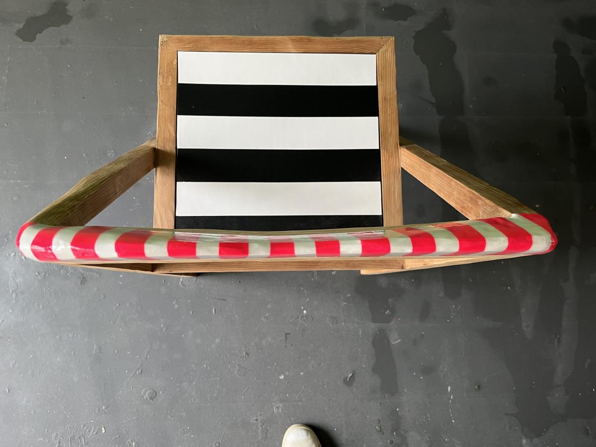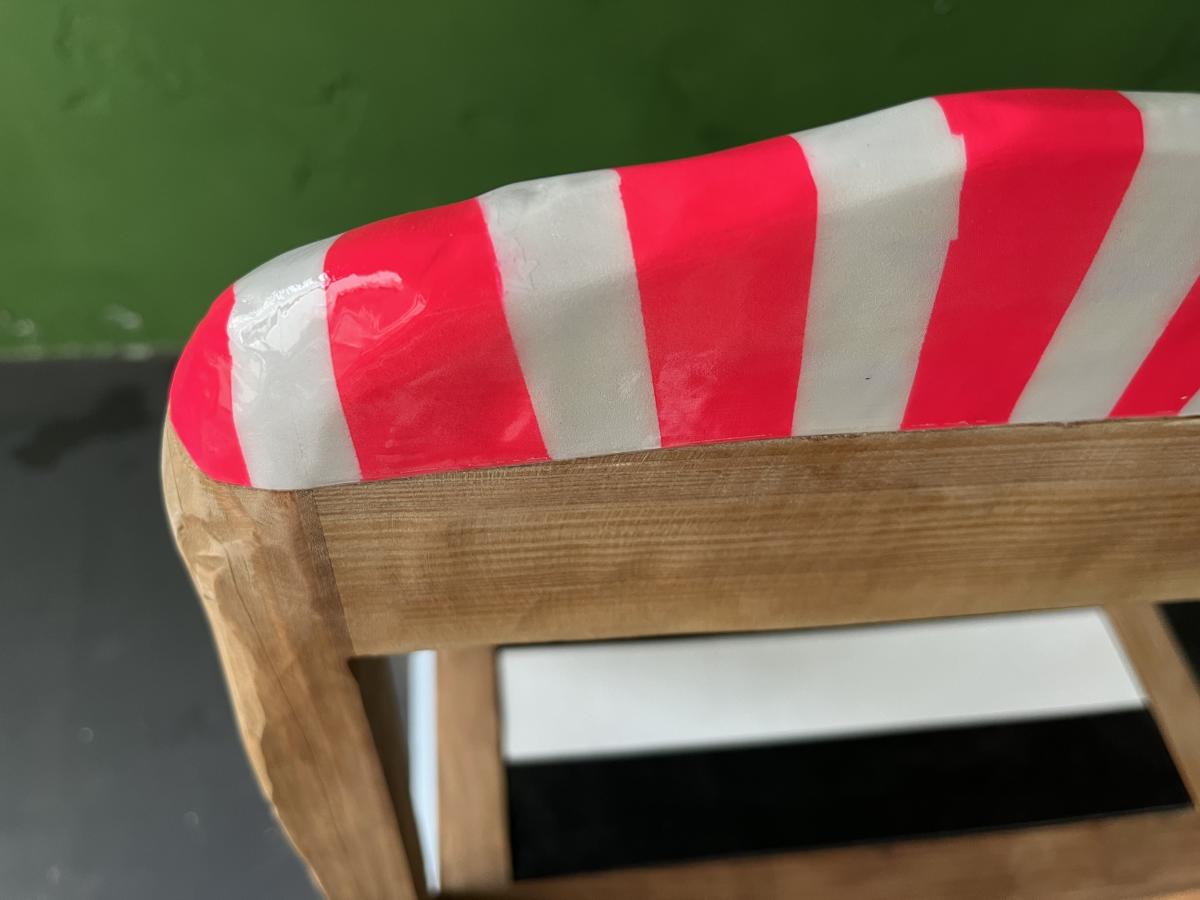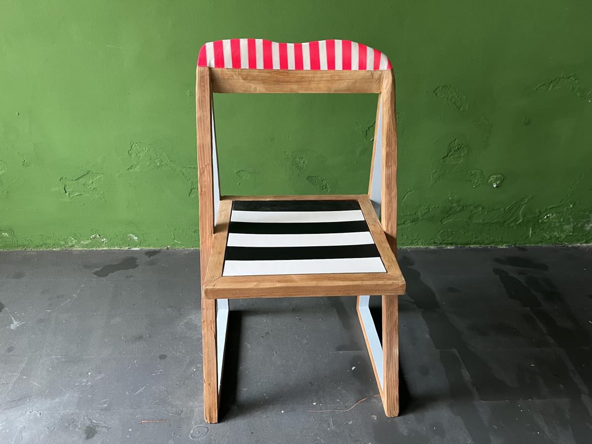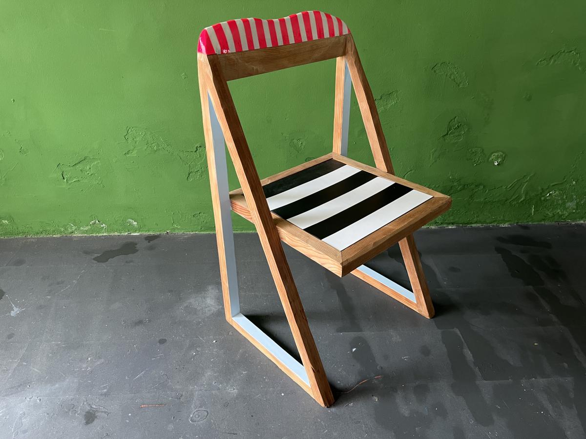 Color my world/ set of 2 These triangle chairs where re-shaped, colored in neon and white, multilacquered, black and white leather strips on the seat. Origin Germany Year 2023 PreviousNext
