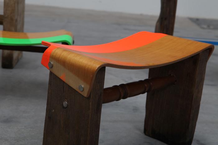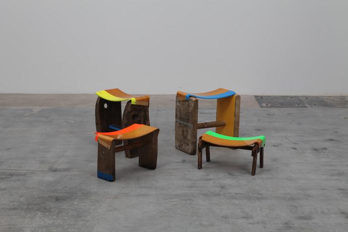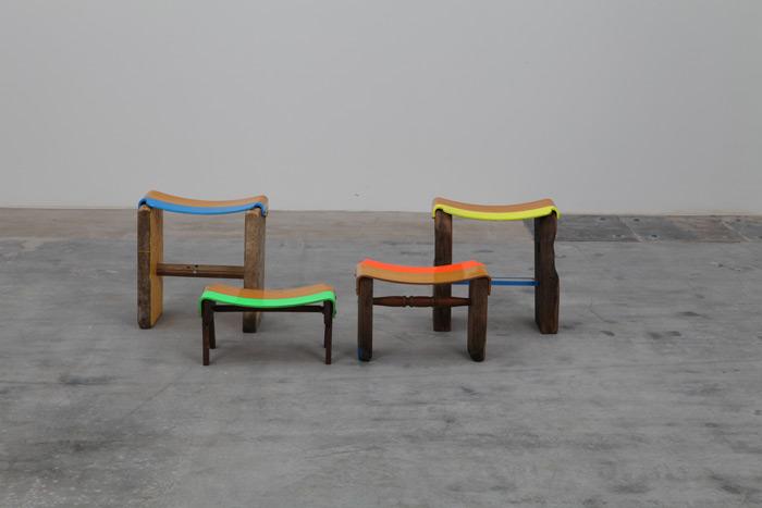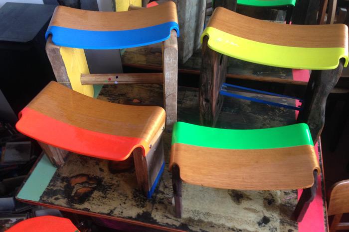 upcycled stools, spraypainted and multi lacquered with 2k varnish