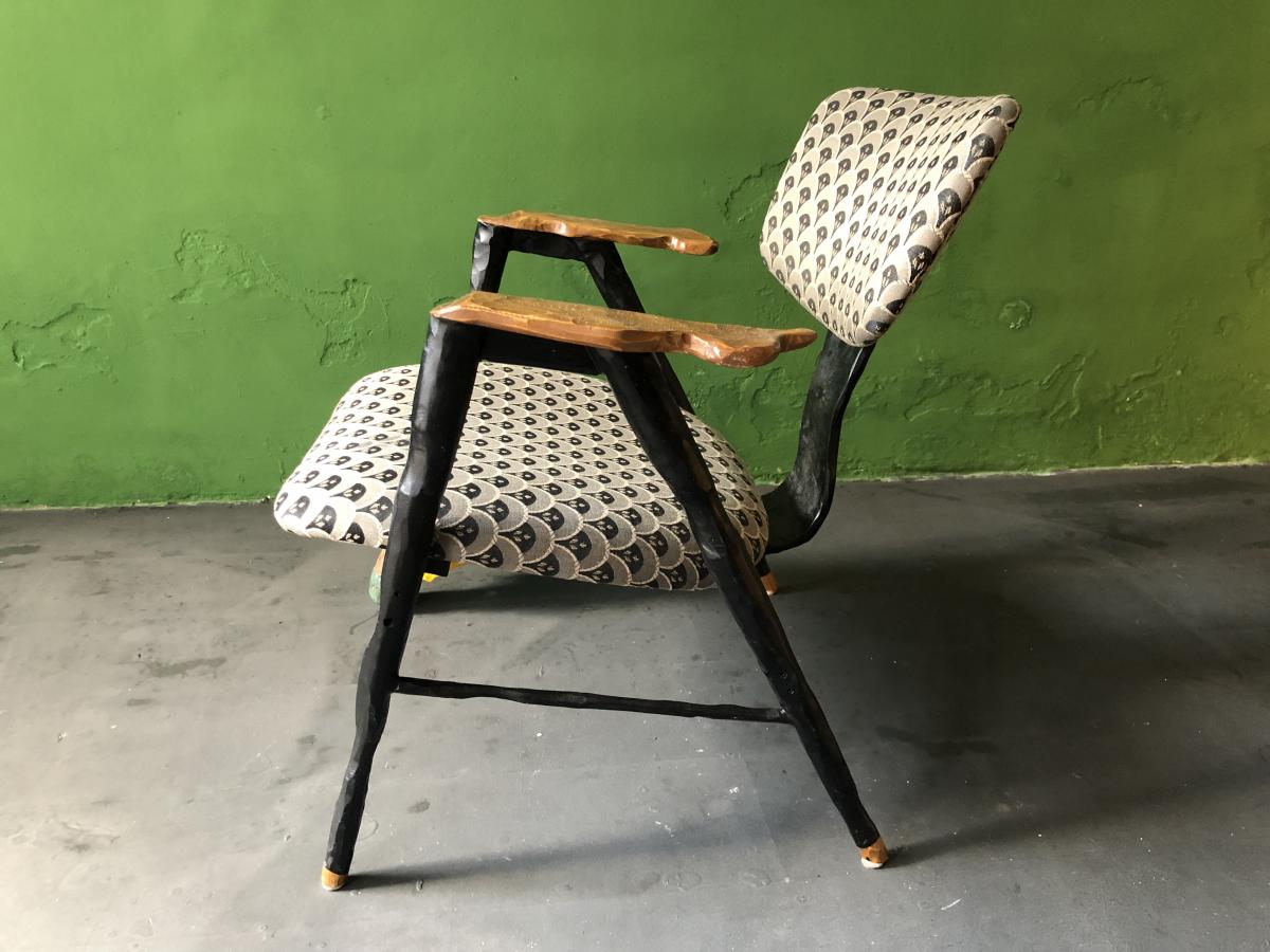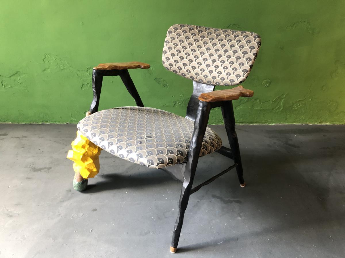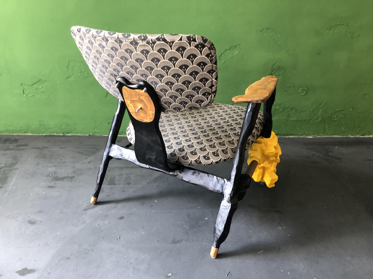 Fortschritt durch Technik/ Cees Braakman Cees Braakman chair contemporized. Feet Sculpture added, re shaped and lacquered Origin Den Haag Year 2022 PreviousNext