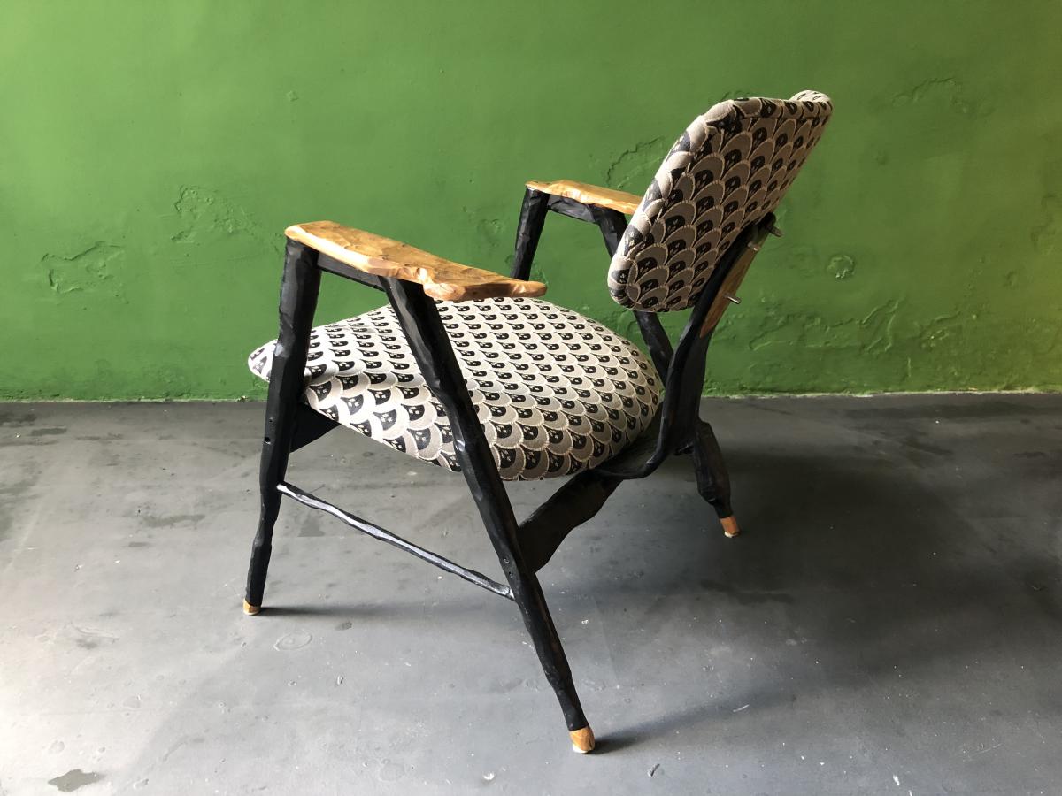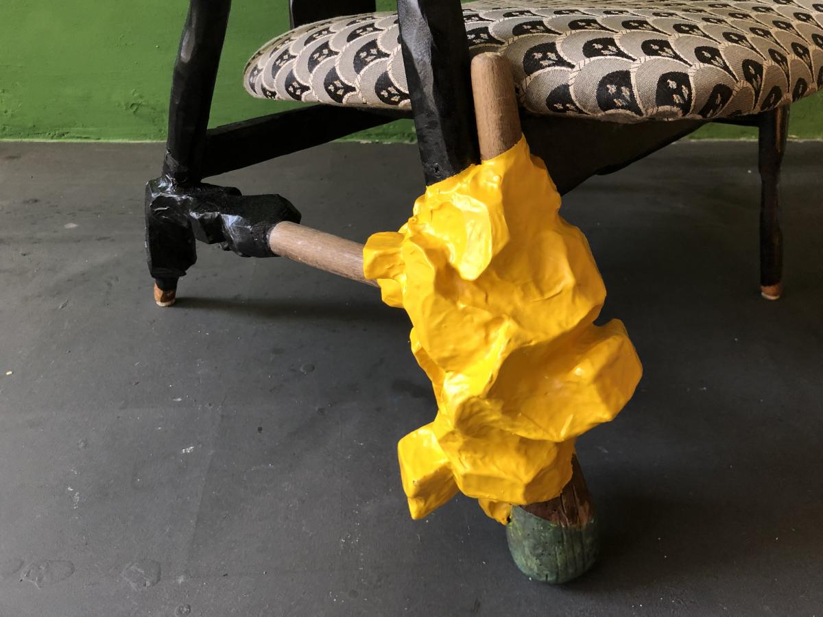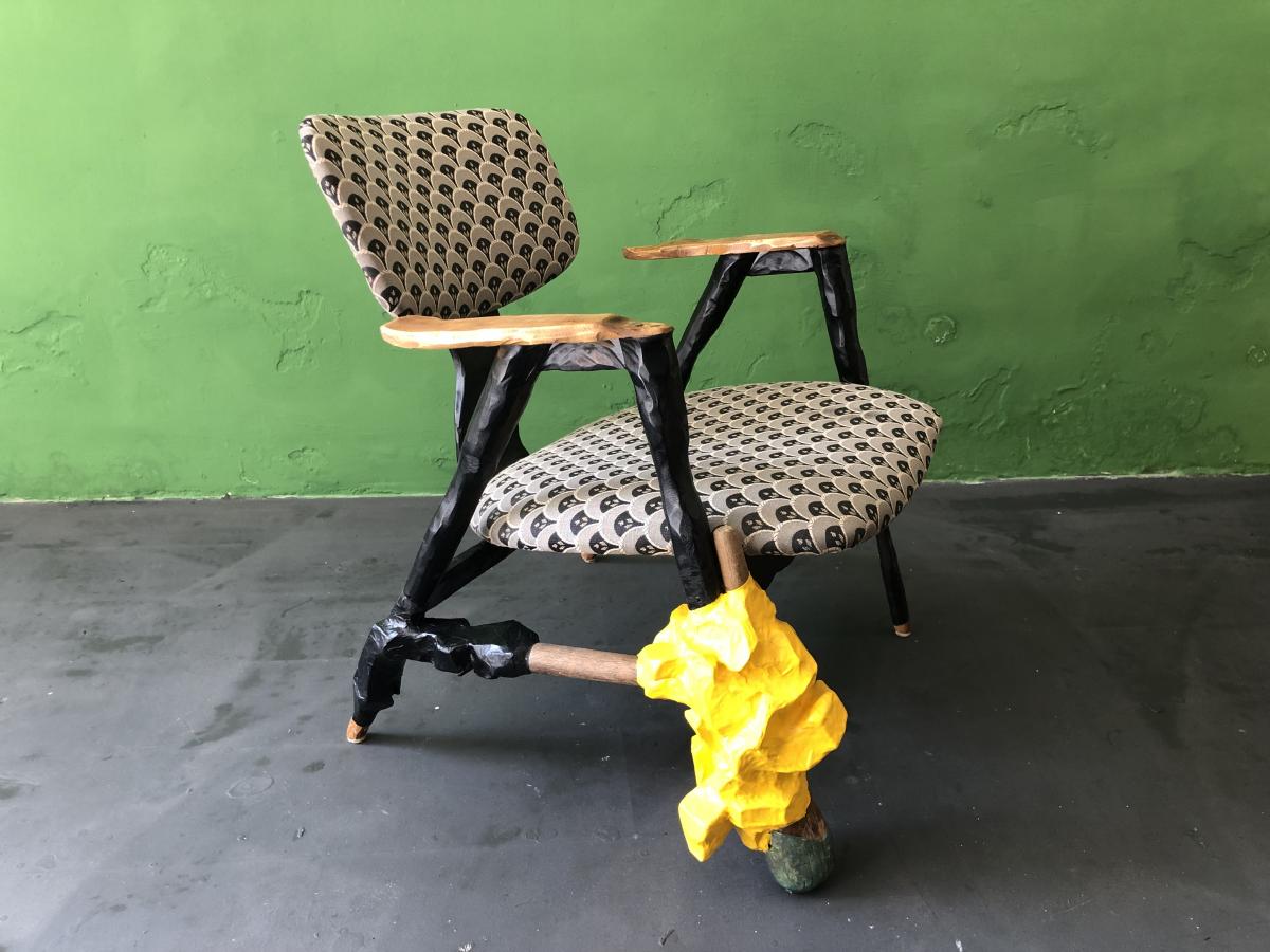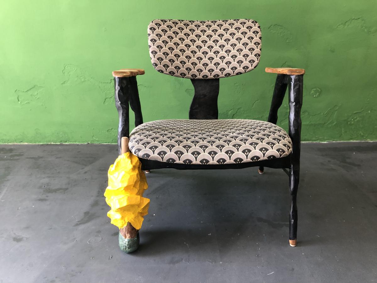Fortschritt durch Technik/ Cees Braakman Cees Braakman chair contemporized. Feet Sculpture added, re shaped and lacquered Origin Den Haag Year 2022 PreviousNext