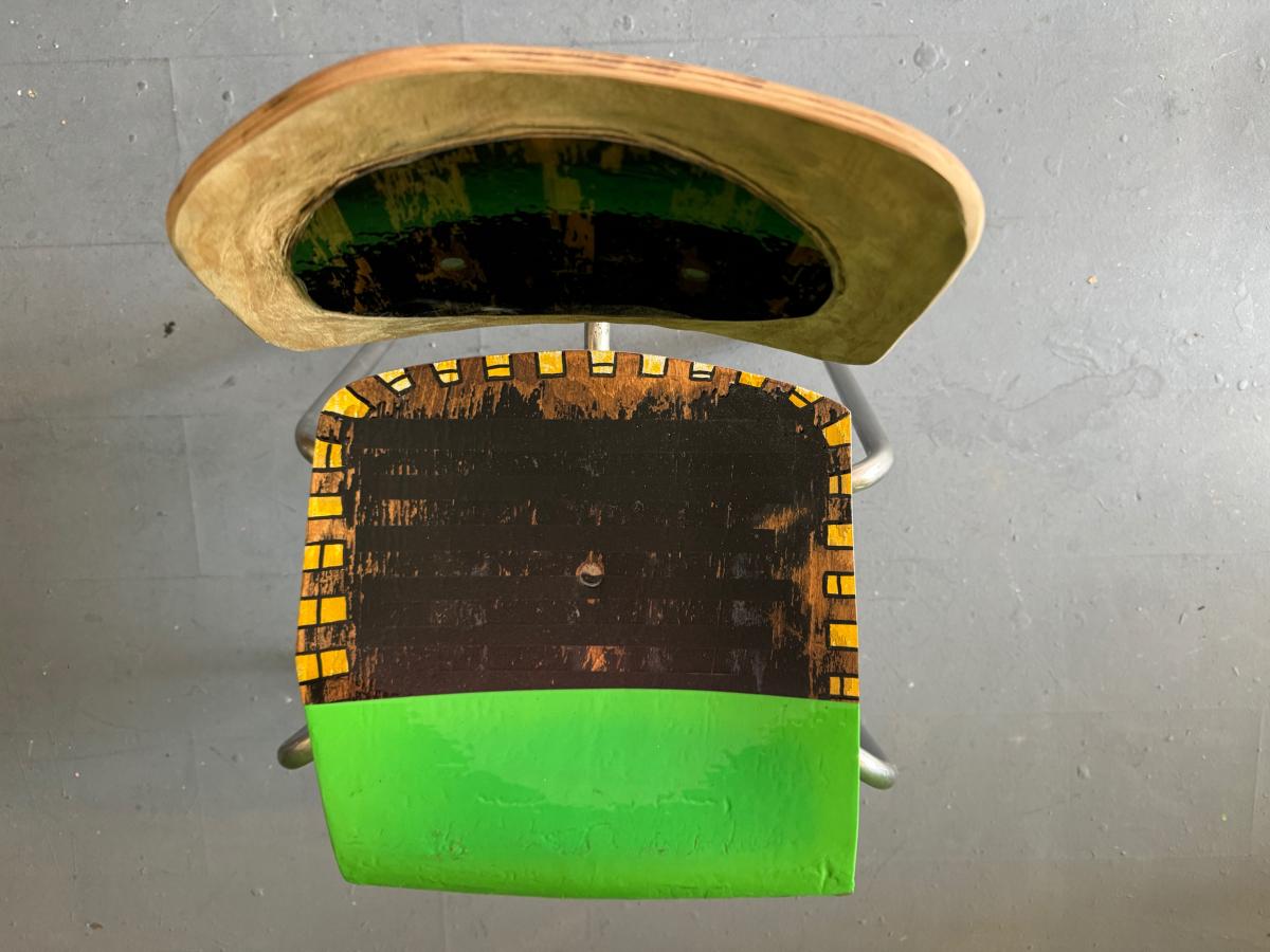 From Pavement to Penthouse Mauser chair contemporized, painted, cut and multi lacquered with high gloss varnish Origin Berlin Year 2024 PreviousNext
