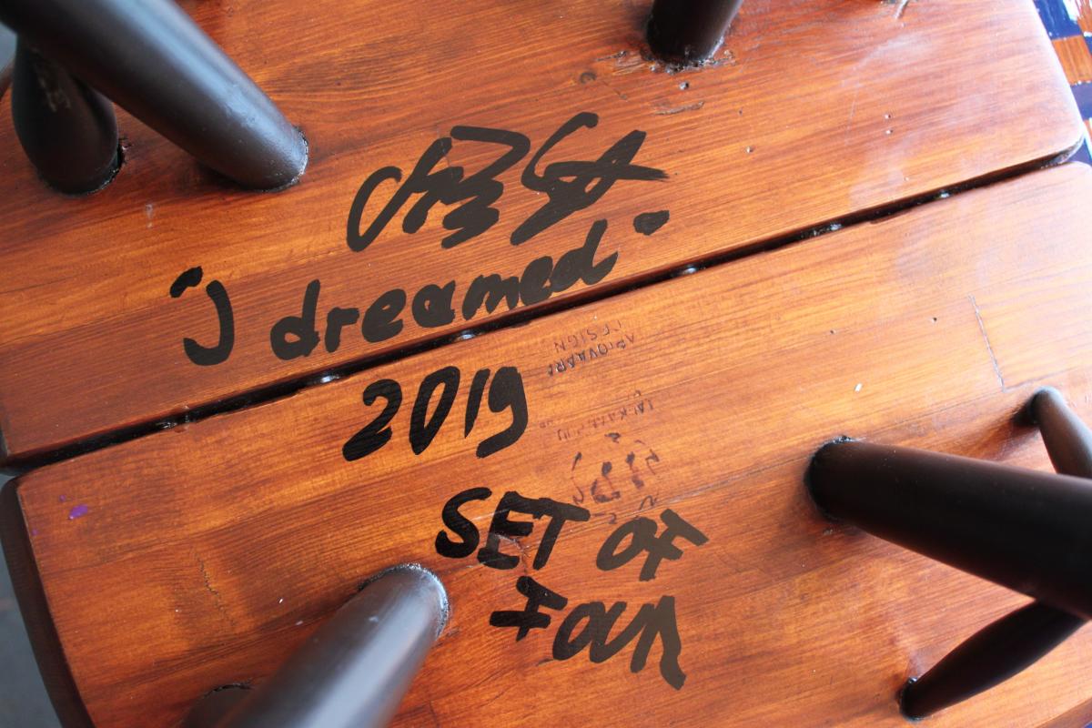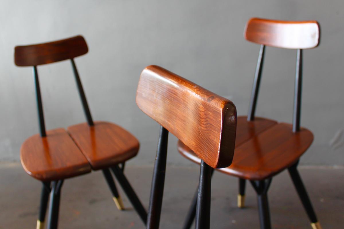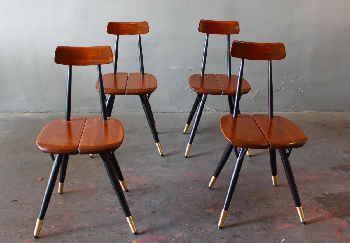 I dreamed set of four dining chairs Ilmari Tapiovaara set of 4 chairs, highered with brass feet to match todays hights Origin Finland Year 2019 State Sold Price sold PreviousNext