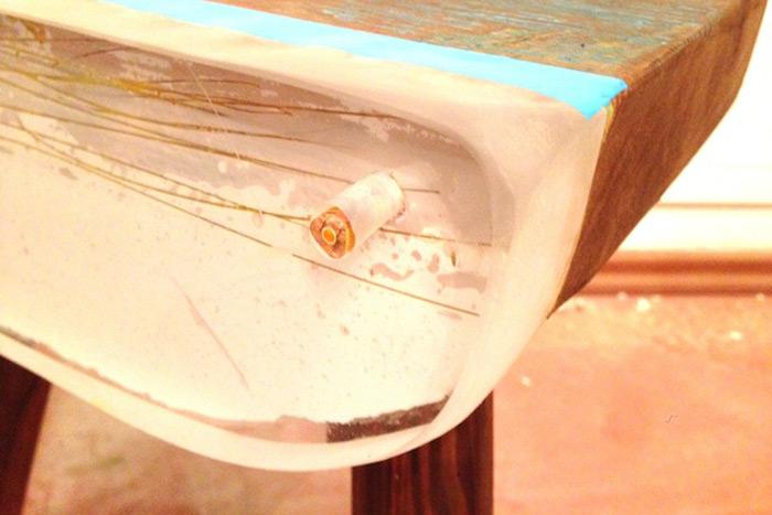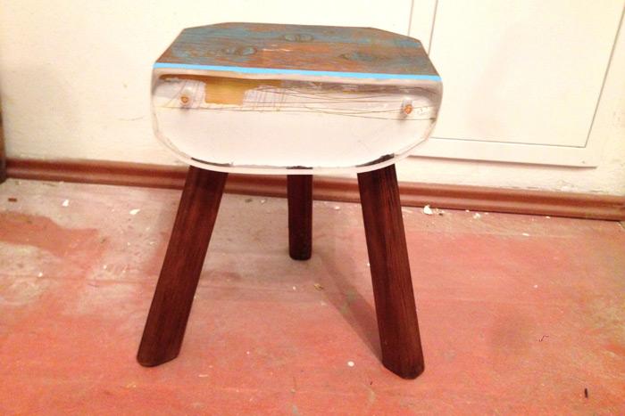 stool, assembled, pre-added, spraypainted and multi-lacquered
