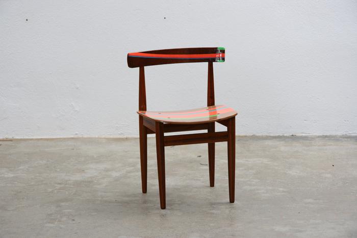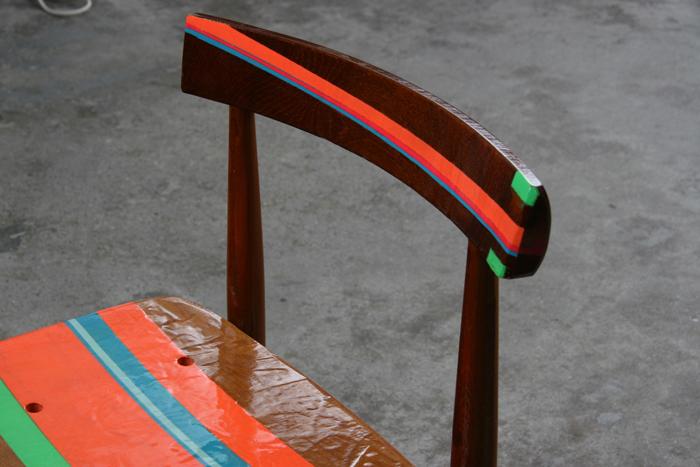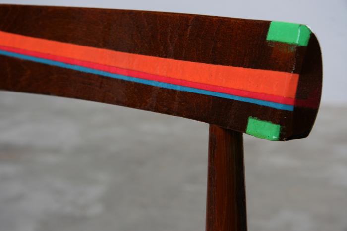 original nordic design craft. seating surface ripped off. modernized in neon colours and layerd with boats varnish
