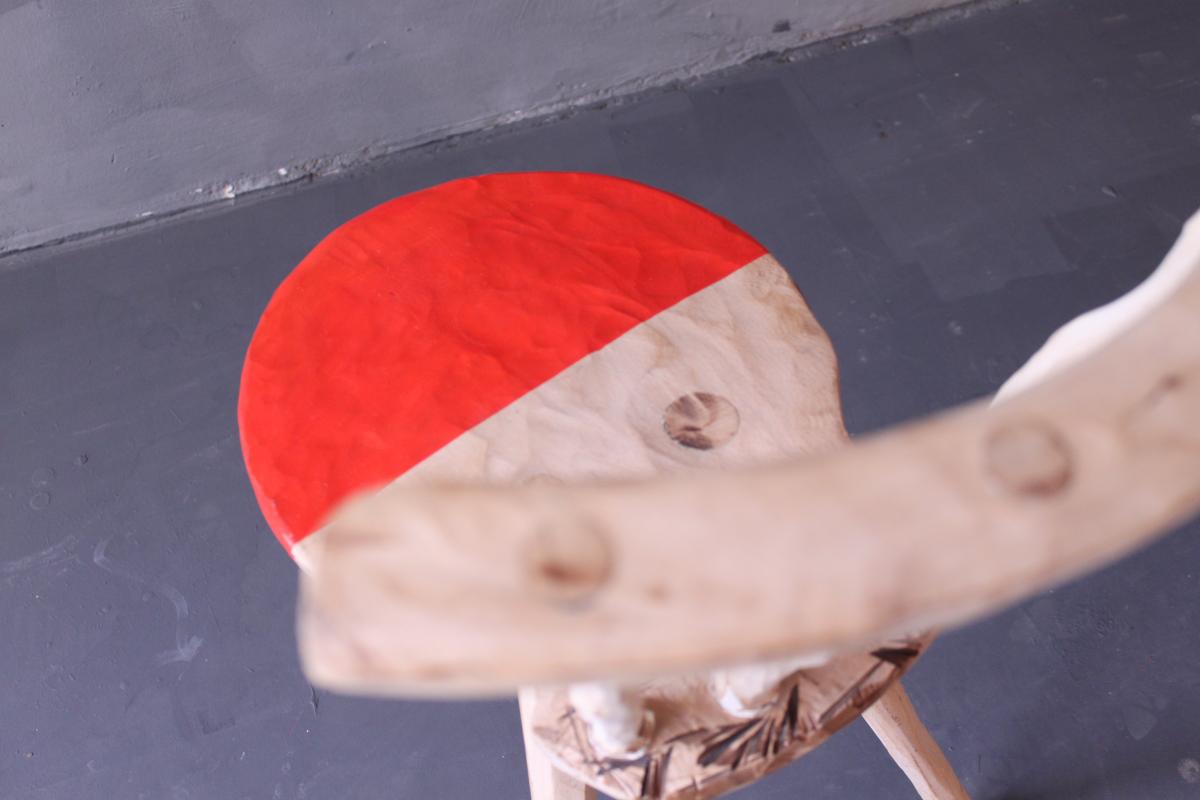 Peak of a Century, 3 legged Austrian "Bauernstuhl" re-modeled and hand painted Origin Waldviertel Year 2020 PreviousNext
