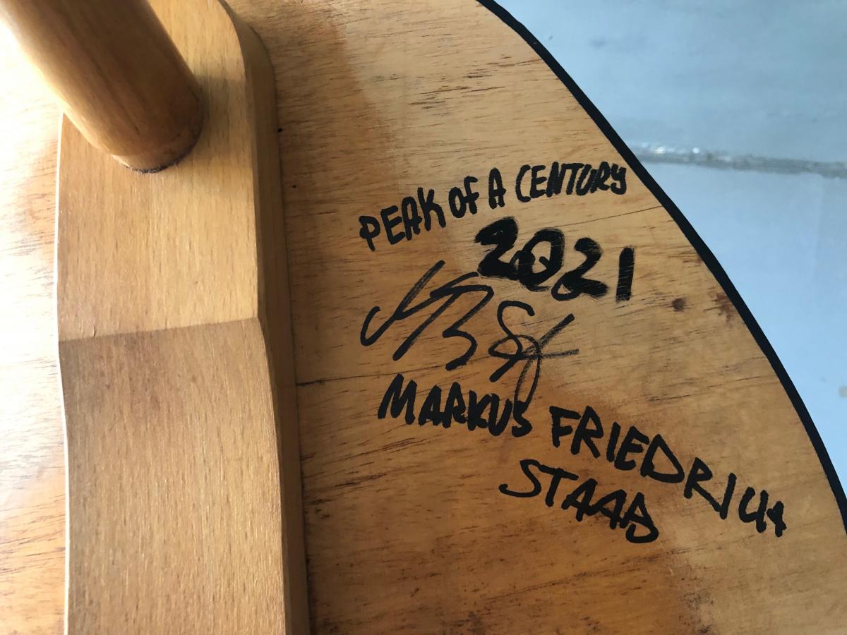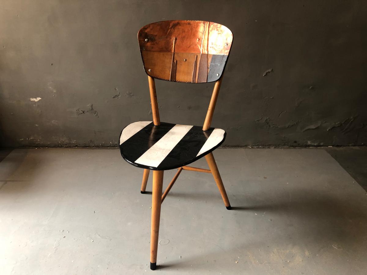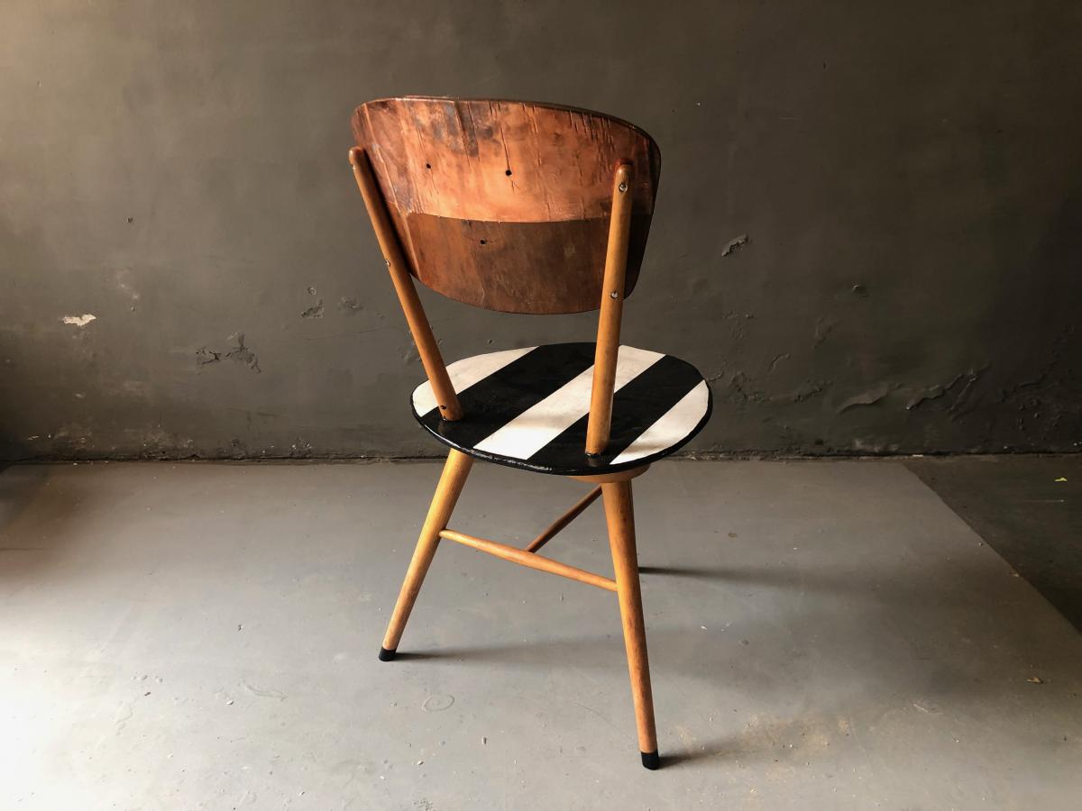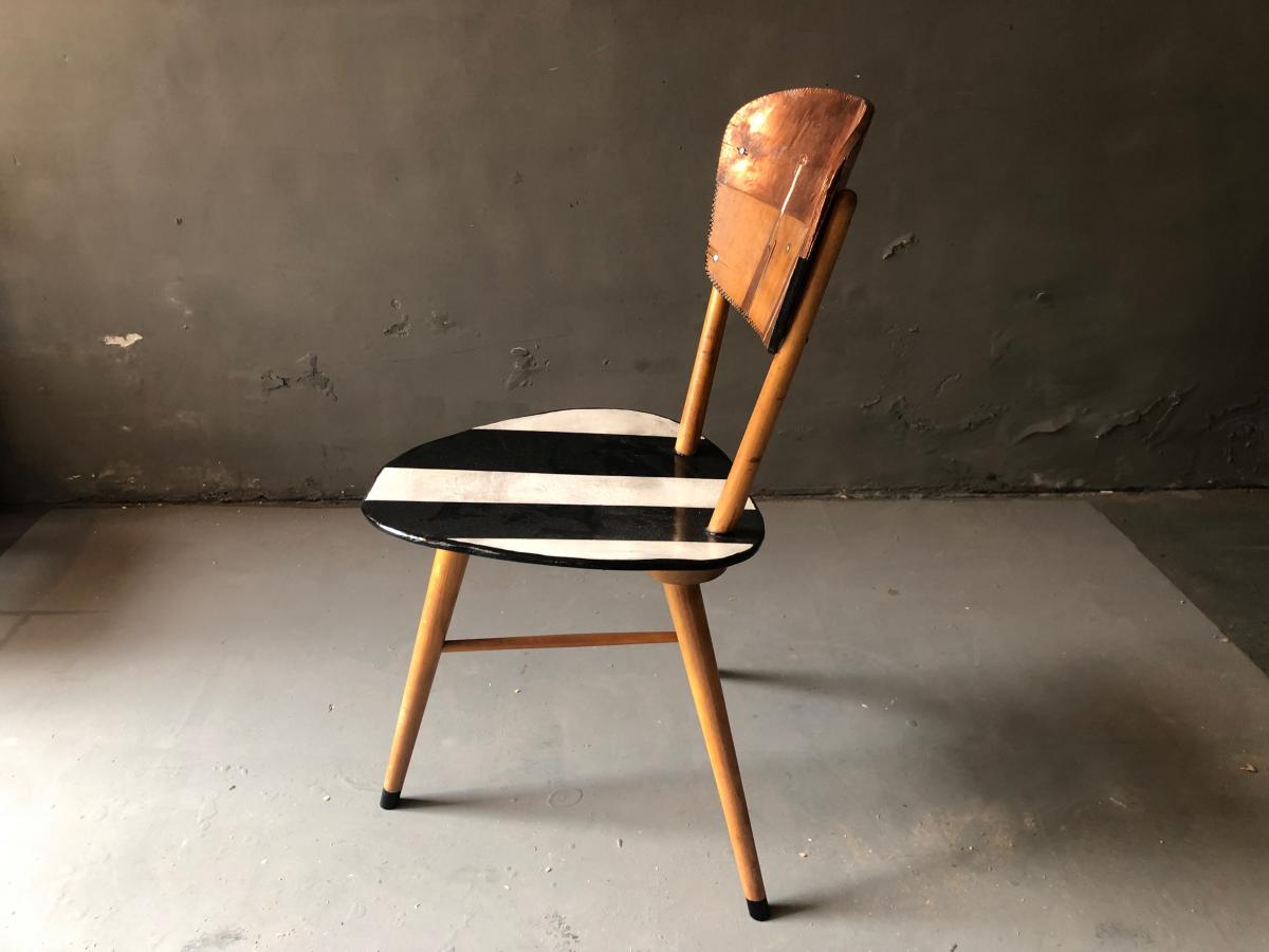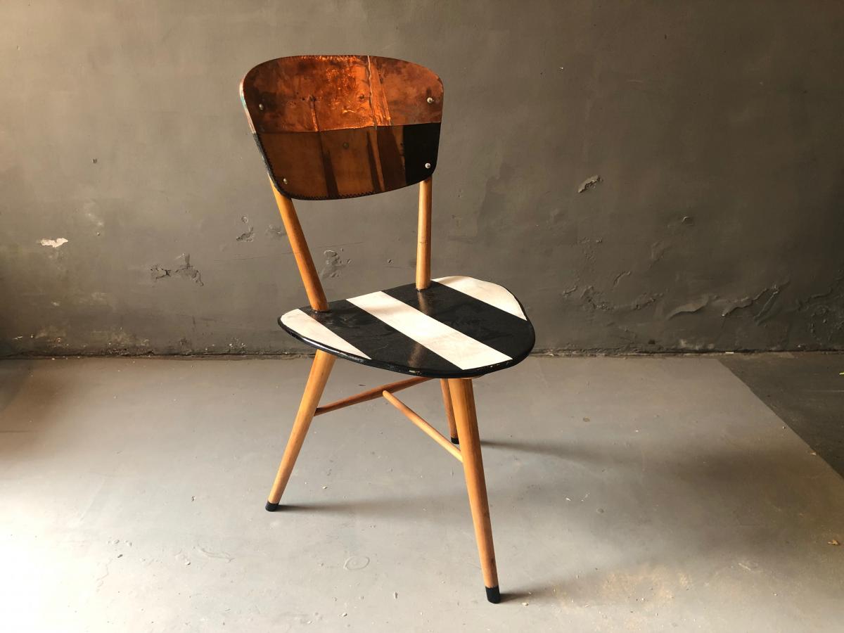 Peak of a Century - galvanised/bw 50's classic chair, backrest exchanged, hand painted, galvanised backrest Origin Art Dealer Year 2021 State Sold PreviousNext