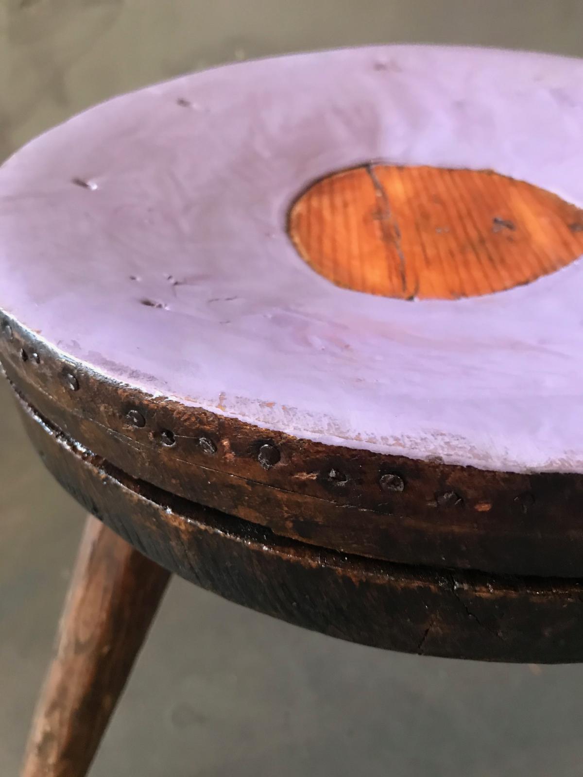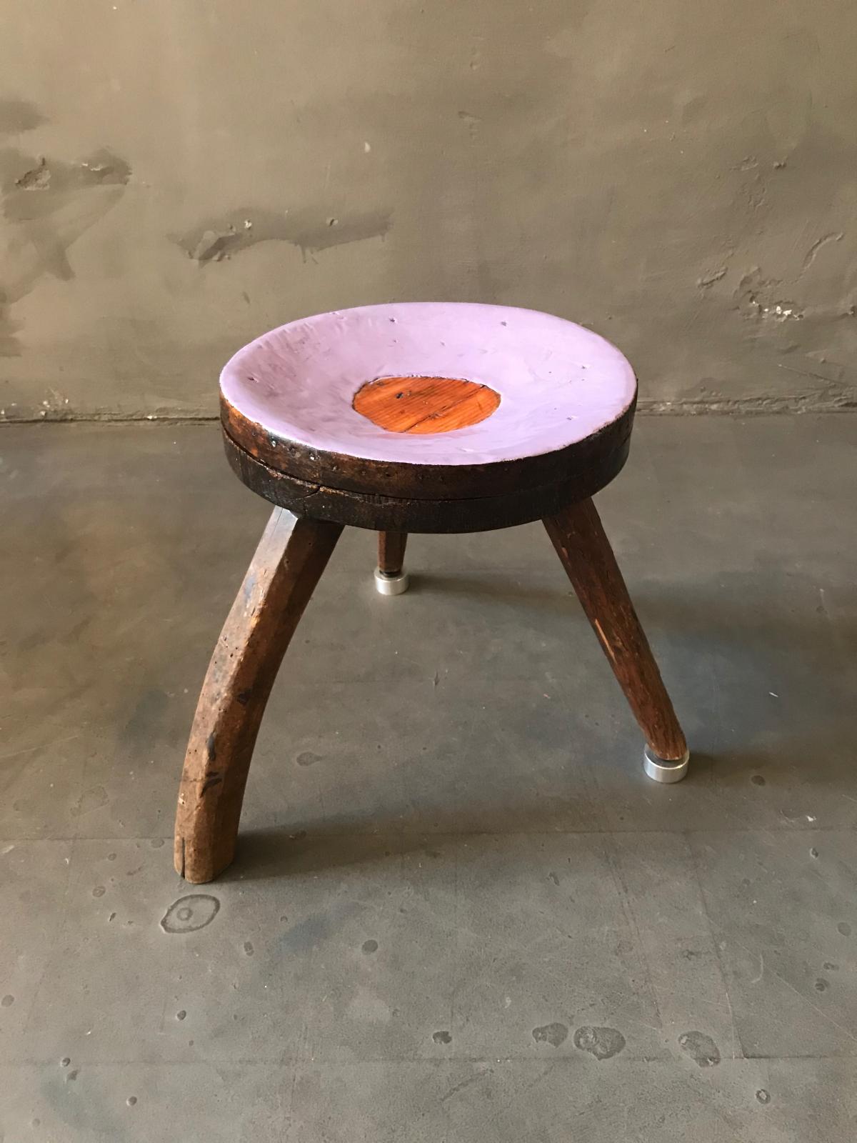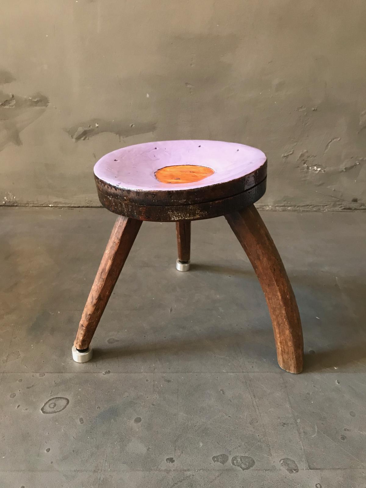 Stool ca. 1890 contemporized, painted and multi-lacquered in high gloss 2K lacquer, 2020.