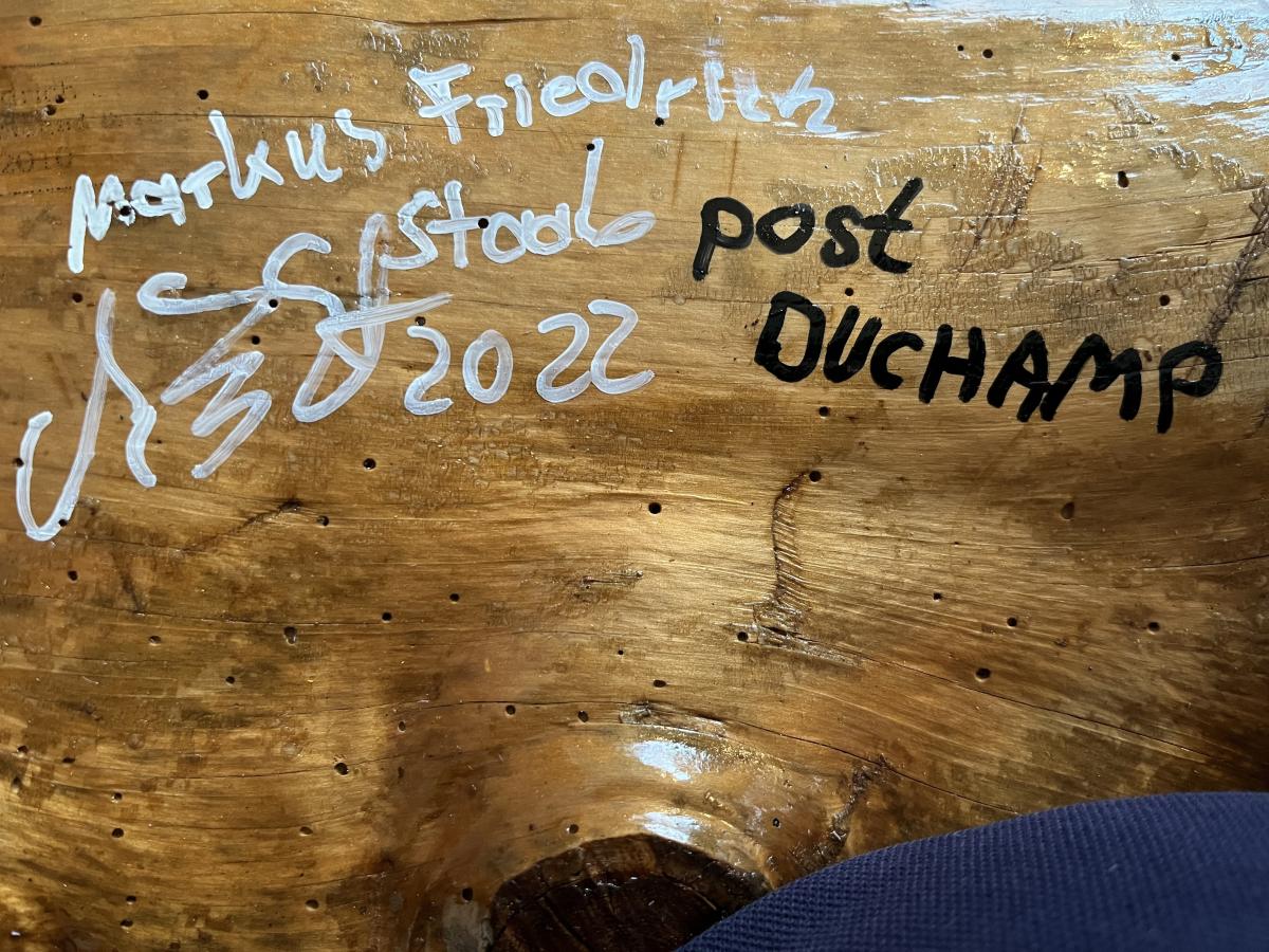 post Duchamp italian farm stool contemorized, additional wood piece added, painted Origin Sachsenhausen/Ffm Year 2022 State Sold PreviousNext