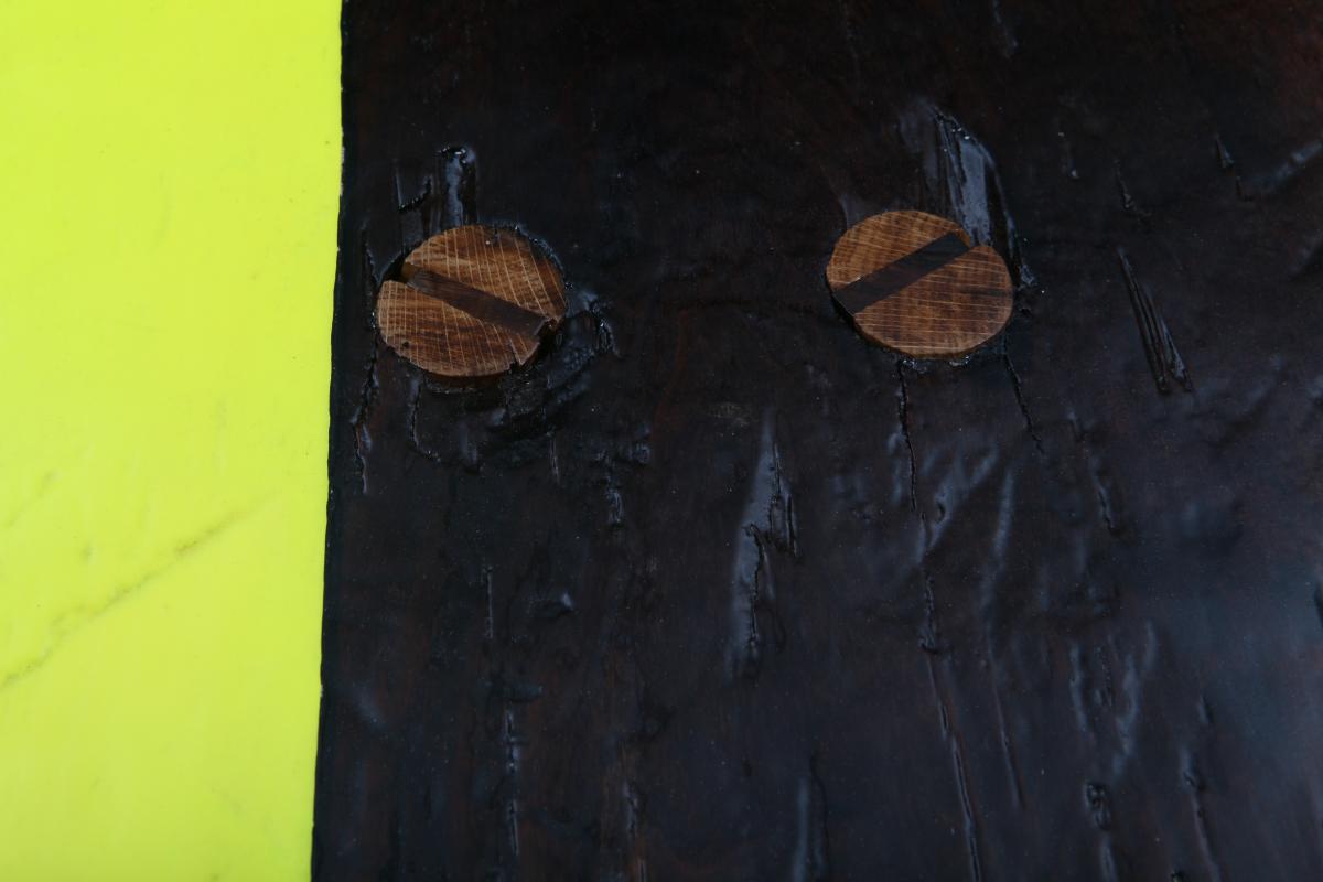 Ancient italian workboard revisited and contemporized, spraypainted and multi-layered in high gloss varnish