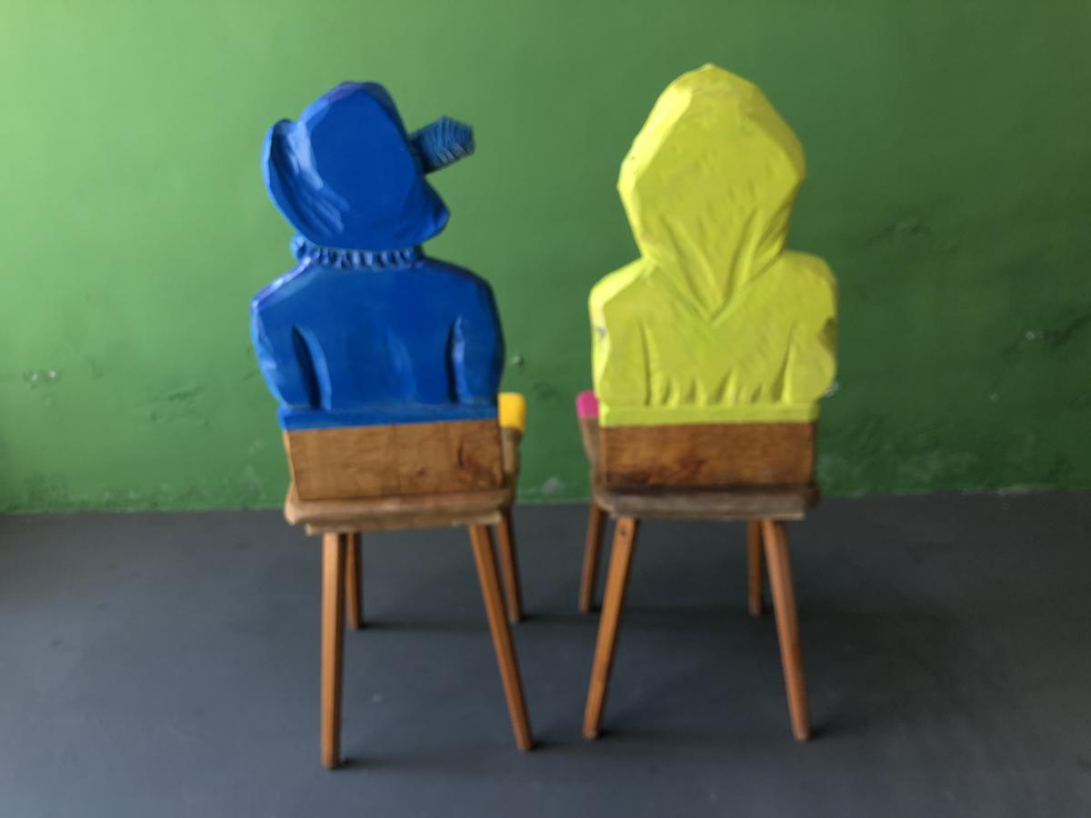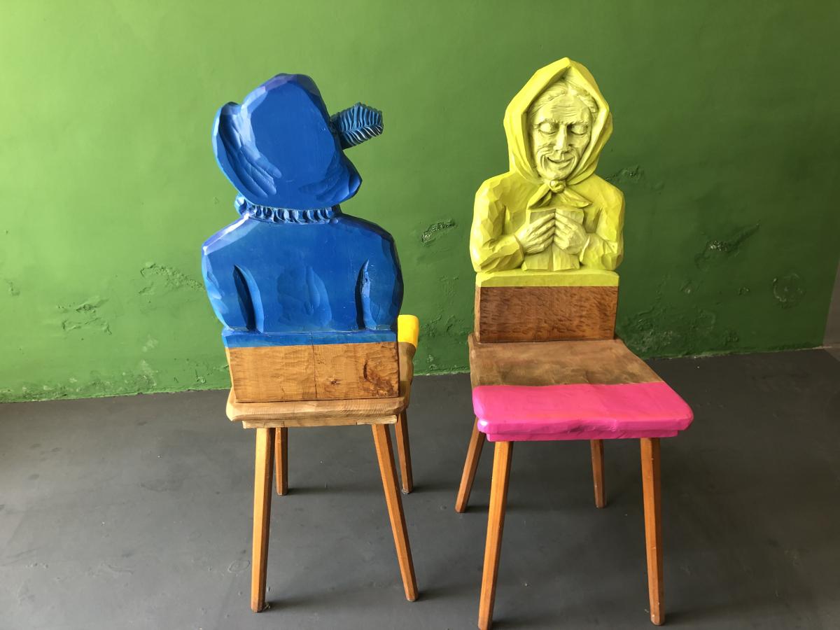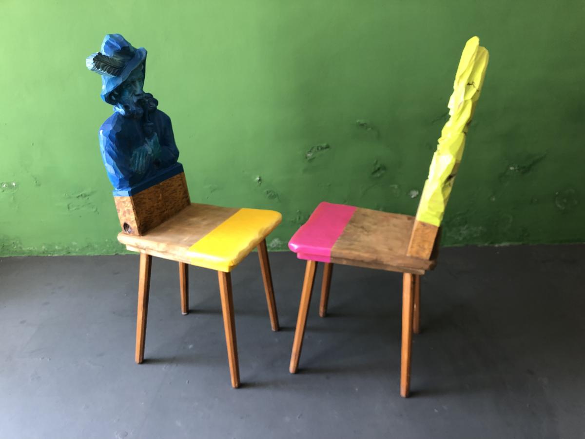 Spirit of a woman/ Spirit of a man Hand carved chairs, hand painted and laquered Origin Bavaria Year 2022 State Sold PreviousNext