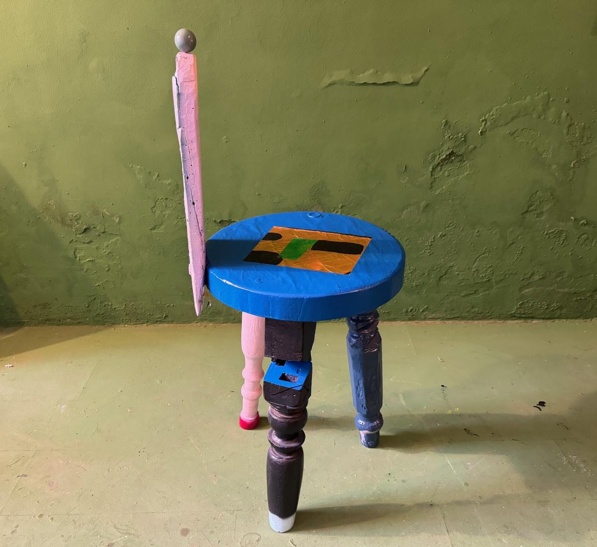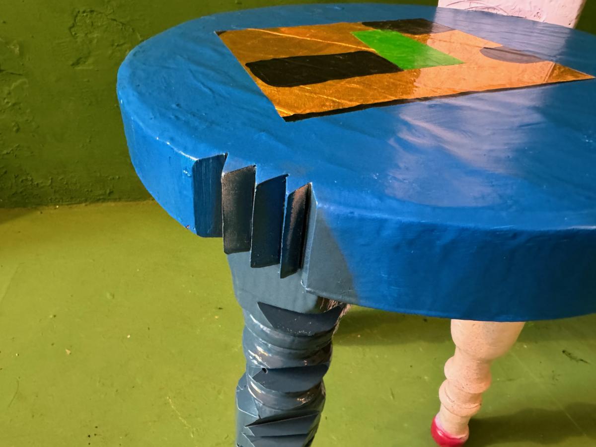 Stummer Diener Teak Indian Stool contempotized, gold bladed. painted and lacquered Origin India PreviousNext