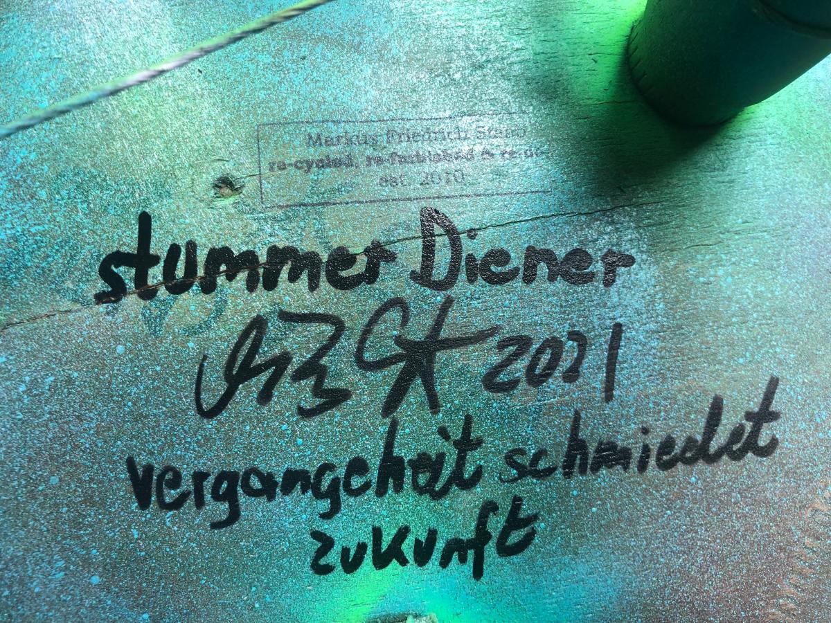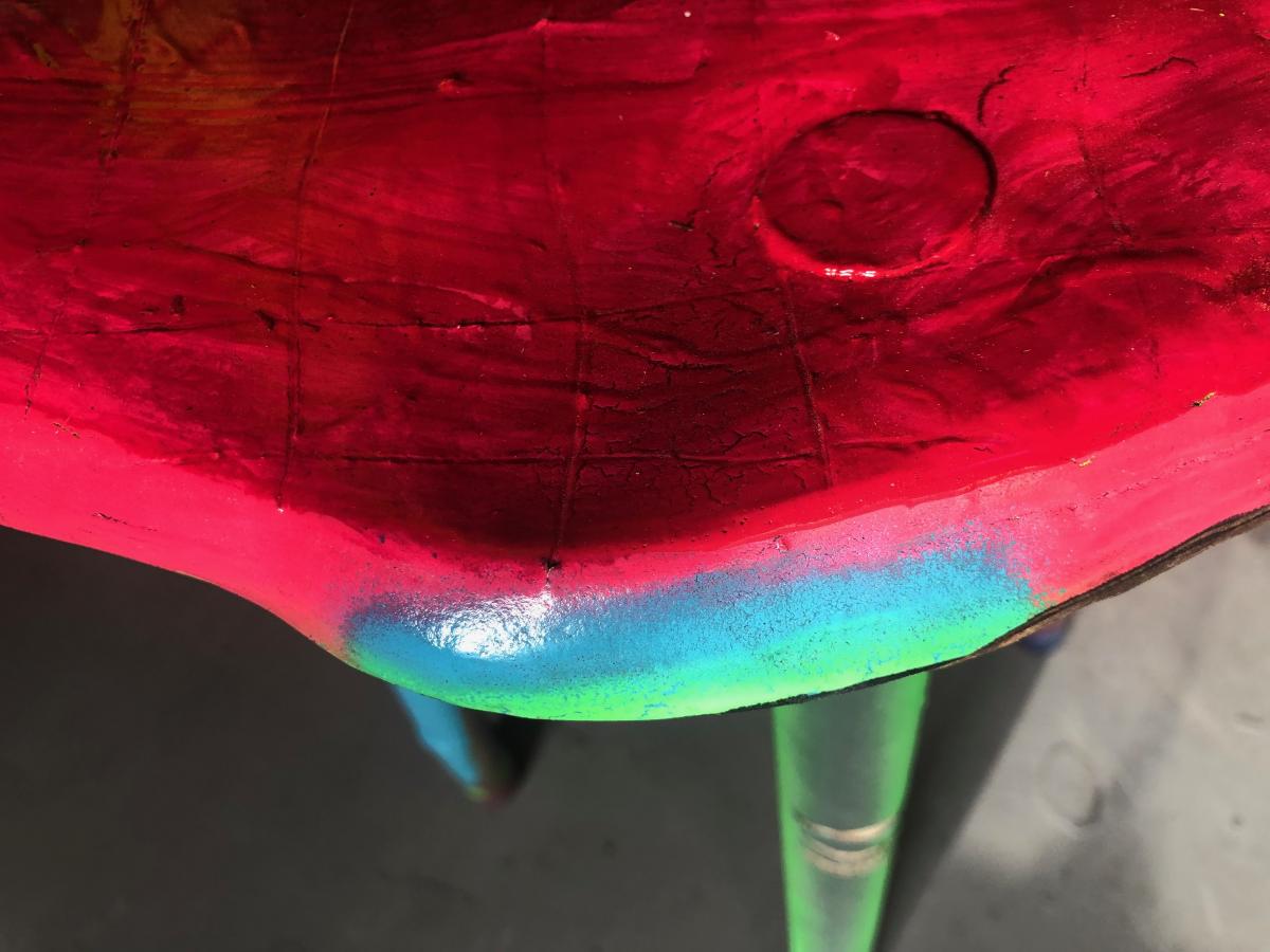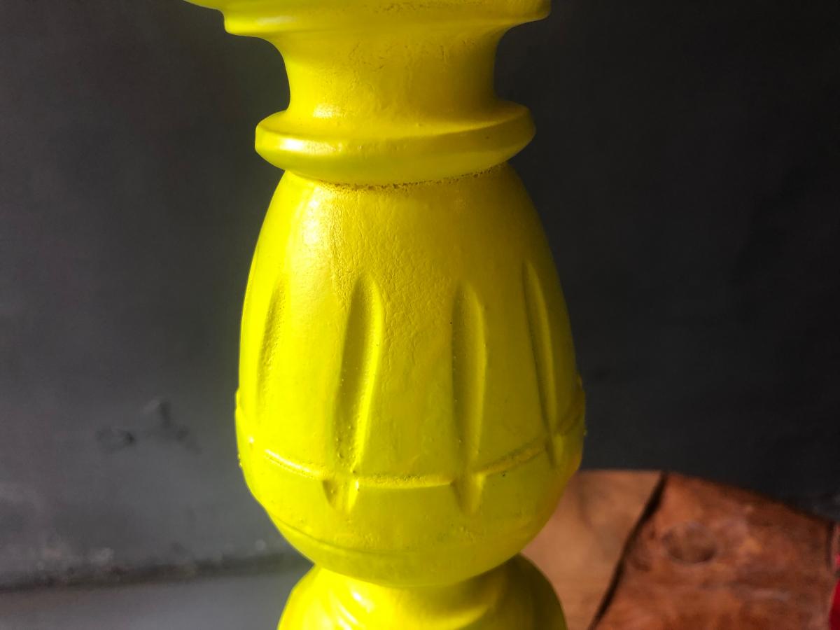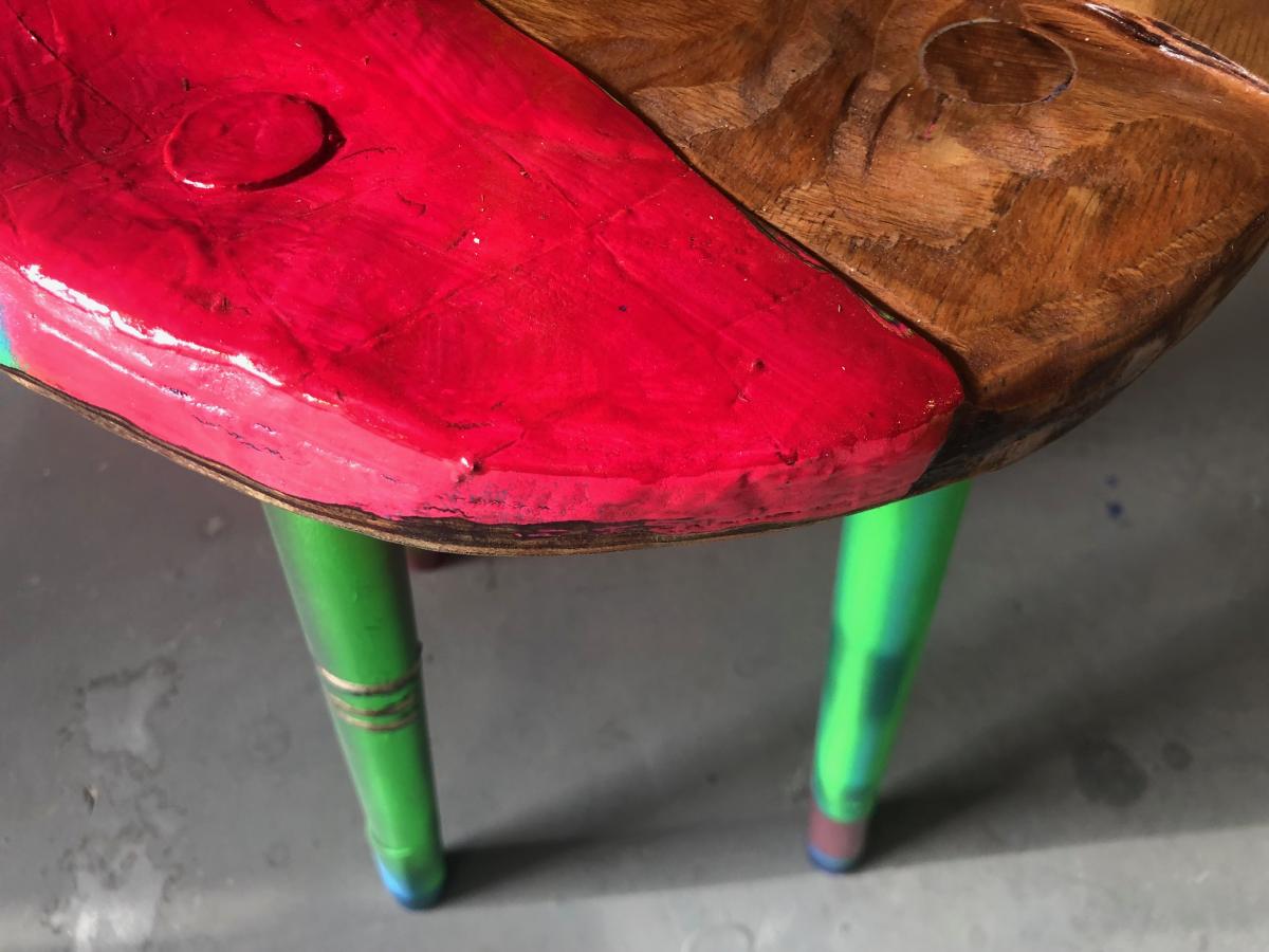 Stummer Diener "Vergangenheit schmiedet Zukunft" yellow bayerischer Stuhl, umgebaut zum stummen Diener, abgeschliffen, hand bemalt und lackiert Origin My Atelier Year 2021 State Sold PreviousNext