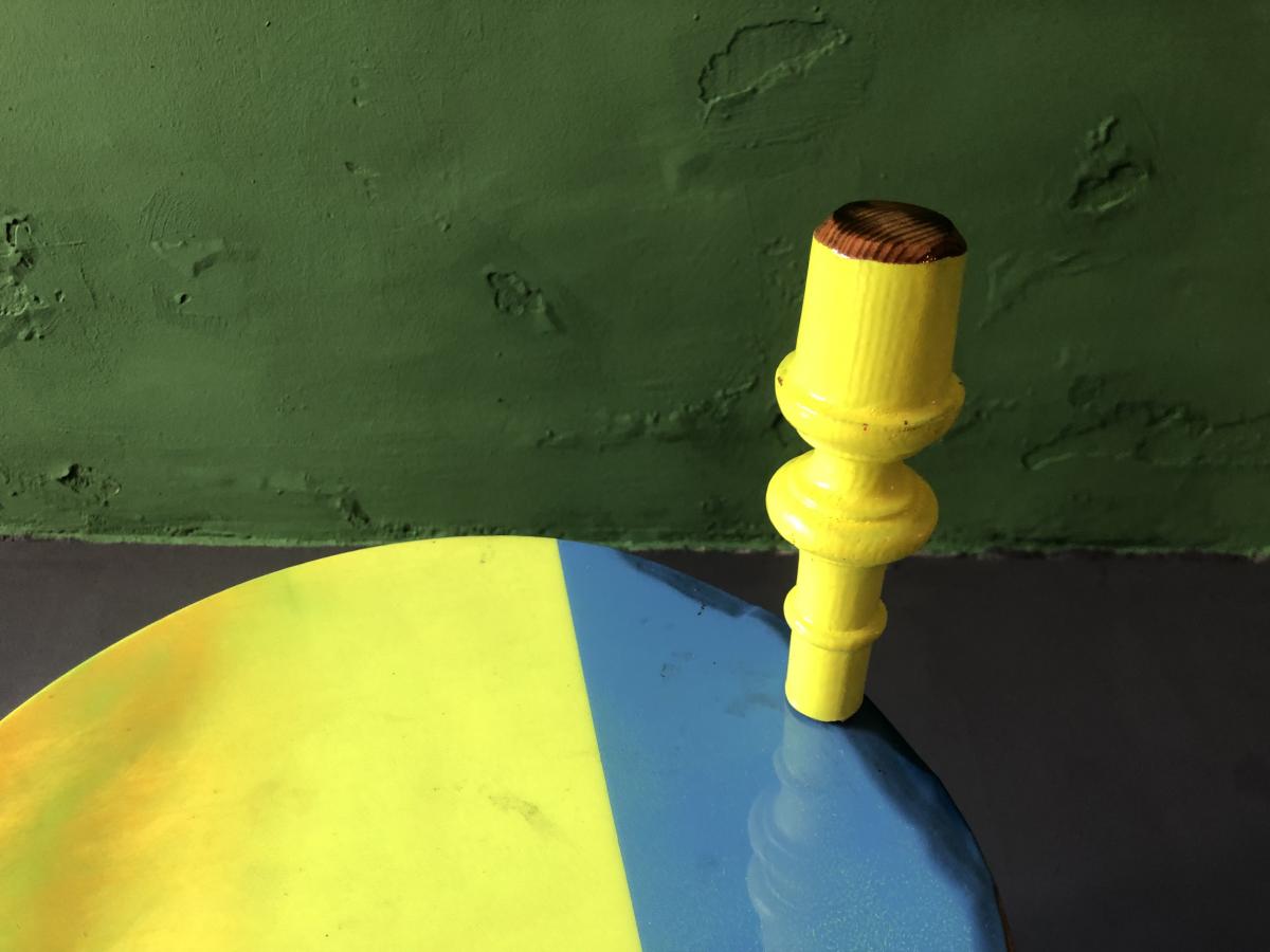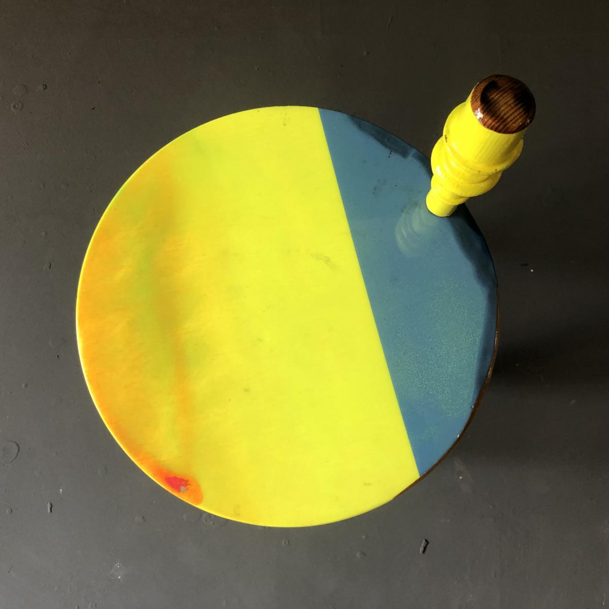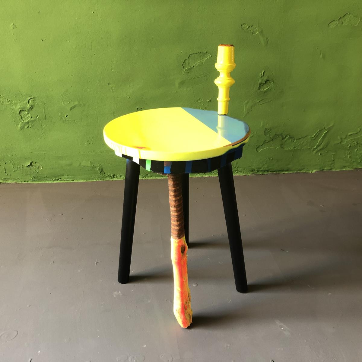 40's stool contemporized, hold added, leg added, painted and multi lacquered