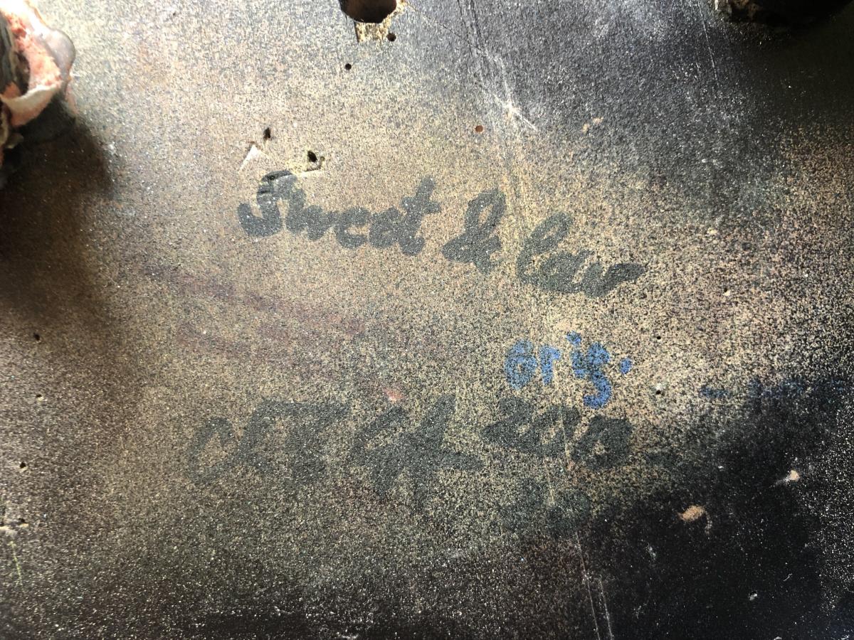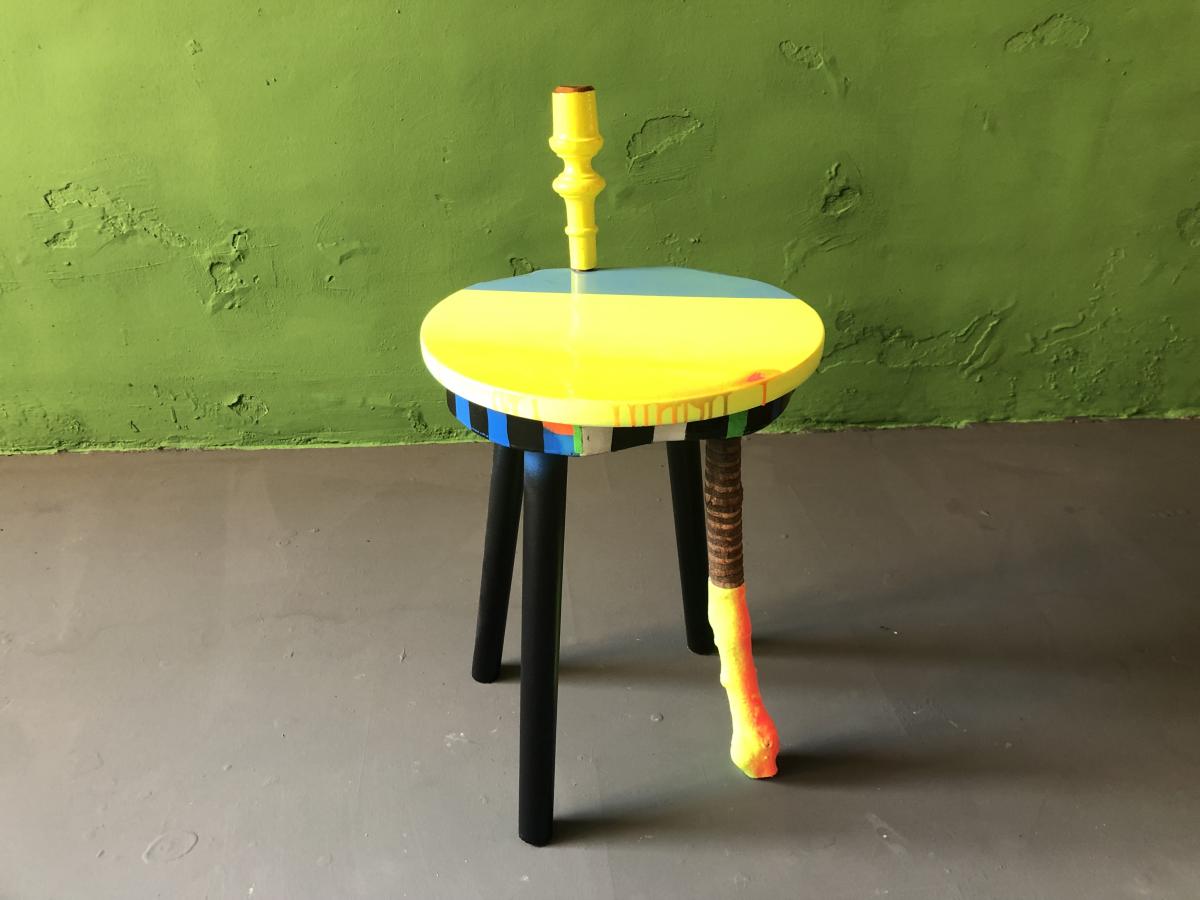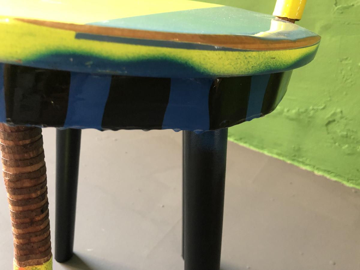 40's stool contemporized, hold added, leg added, painted and multi lacquered
