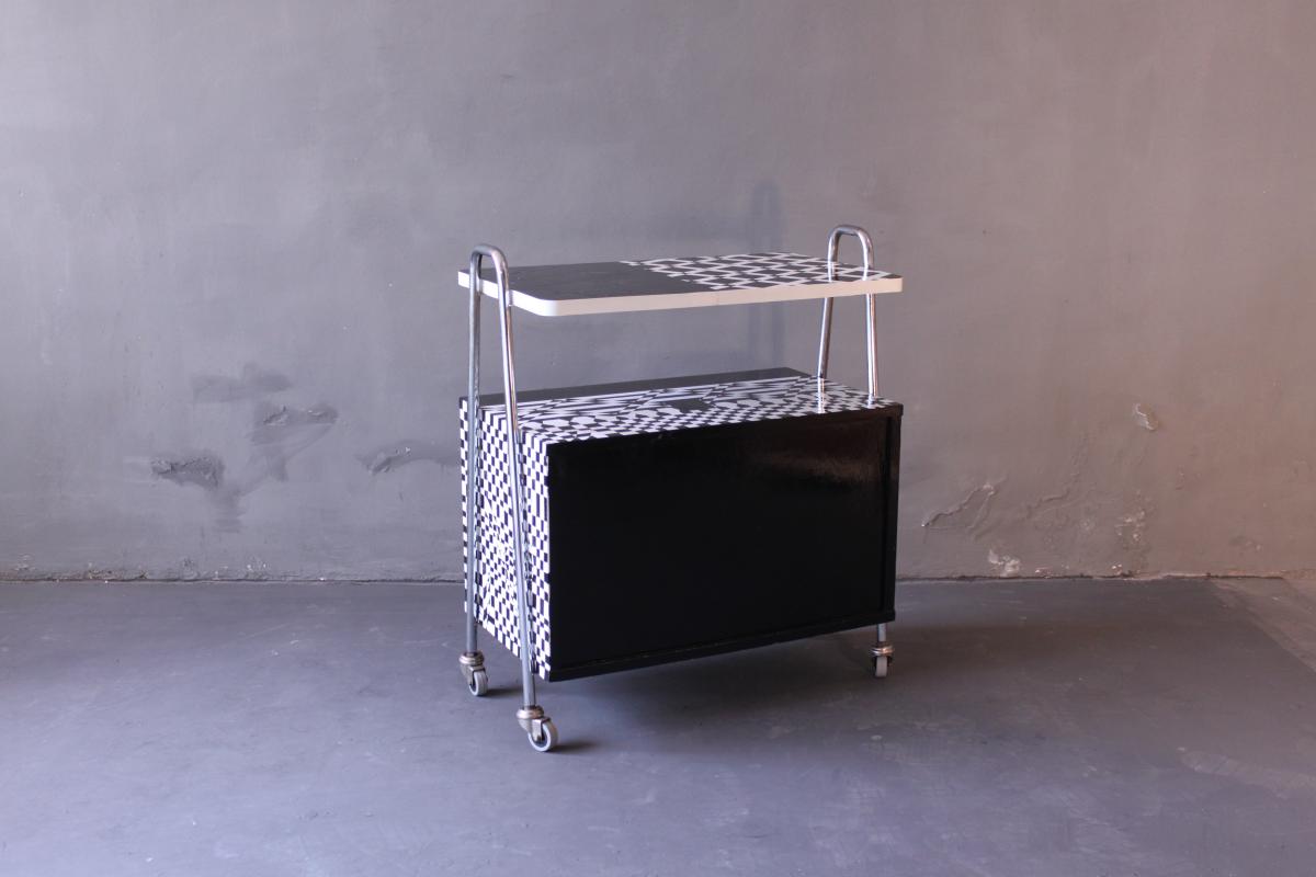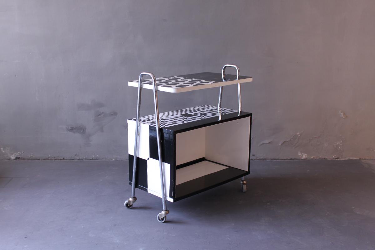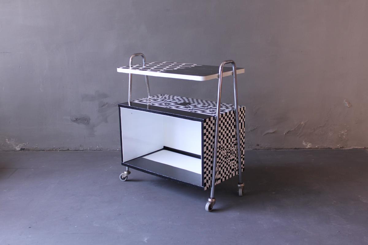 Troubadour der Sterne 60 Teawagon re-decorated in black and white pattern. Paint and high gloss Lacquer Origin Customers Choice Year 2020 State Sold Price old PreviousNext