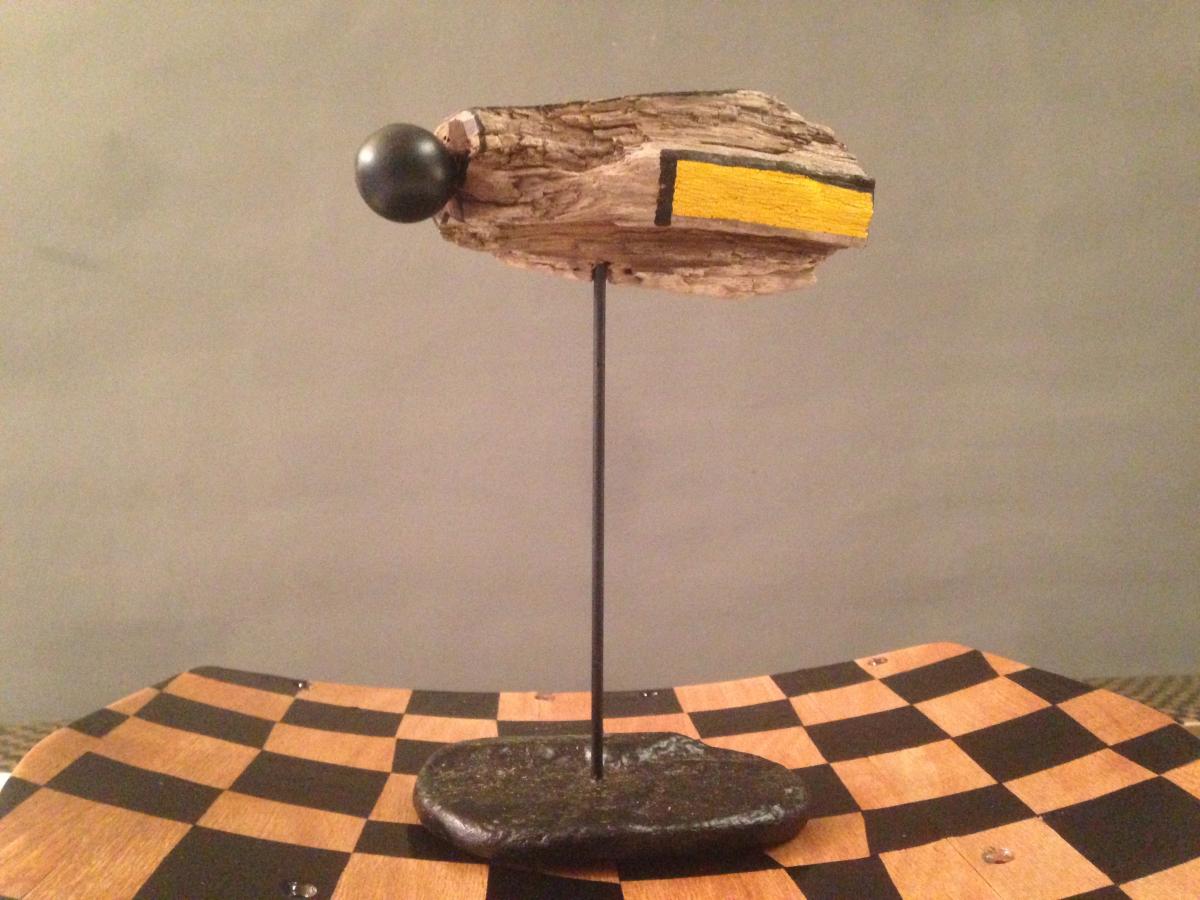 Verdeckte Realität Collected wood, steel, paint, Nelson clock ball. Origin Frankfurt Year 2020 PreviousNext