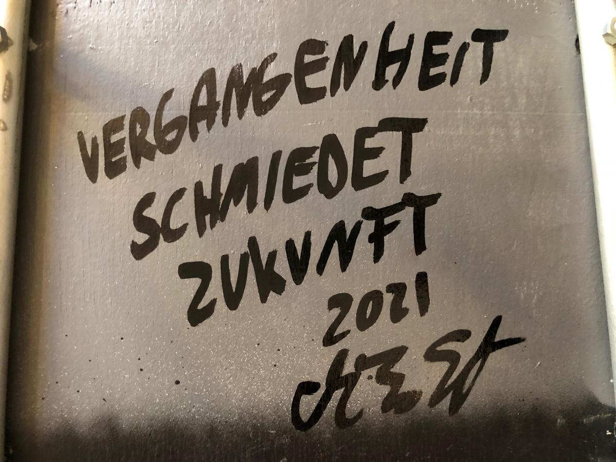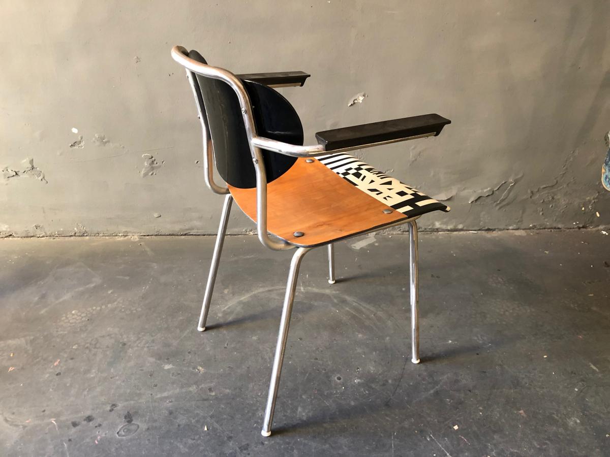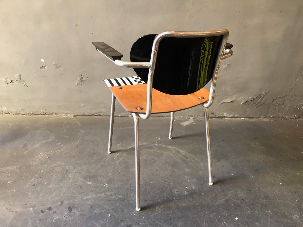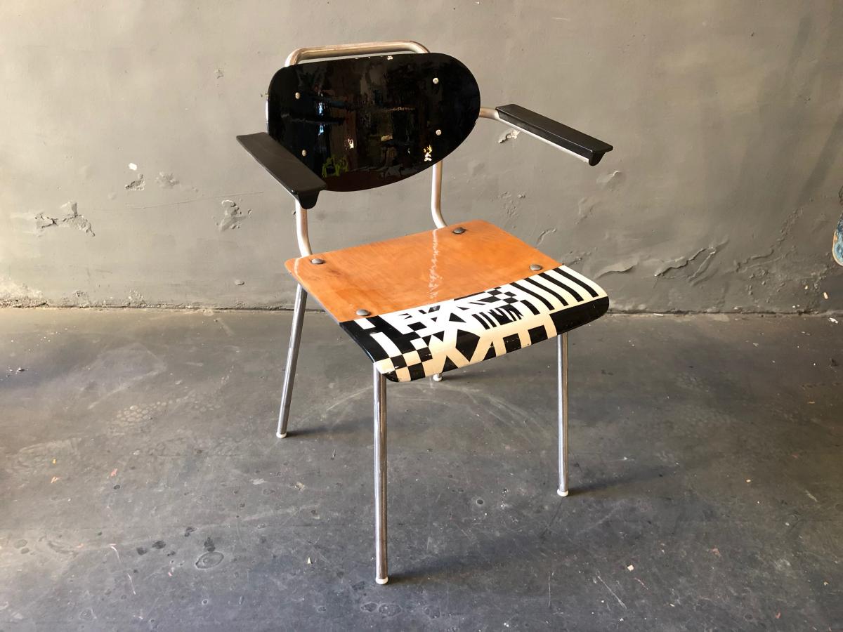 Niederländisches Design "contemporised", schwarz weißes Muster auf Sitzfläche, ersetzte Rückenlehne, mehrfach in Hochglanzlack lackiert