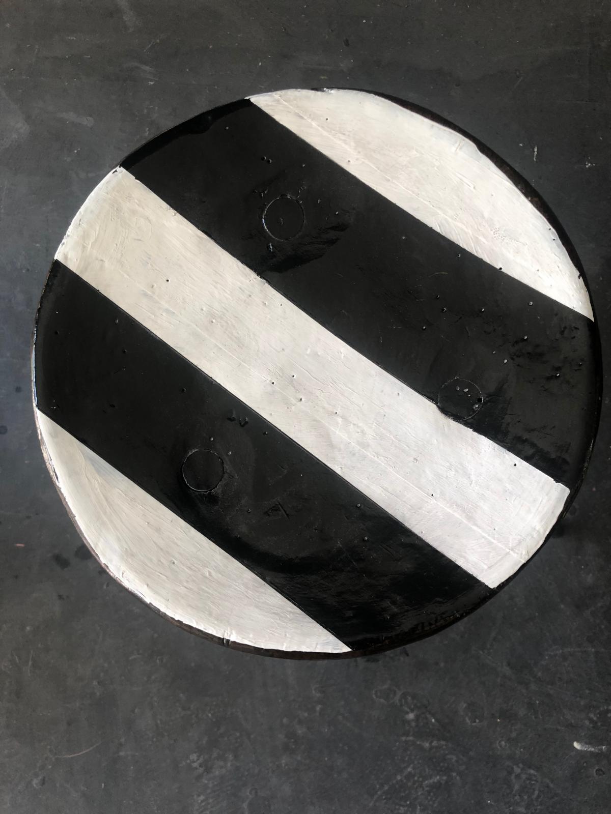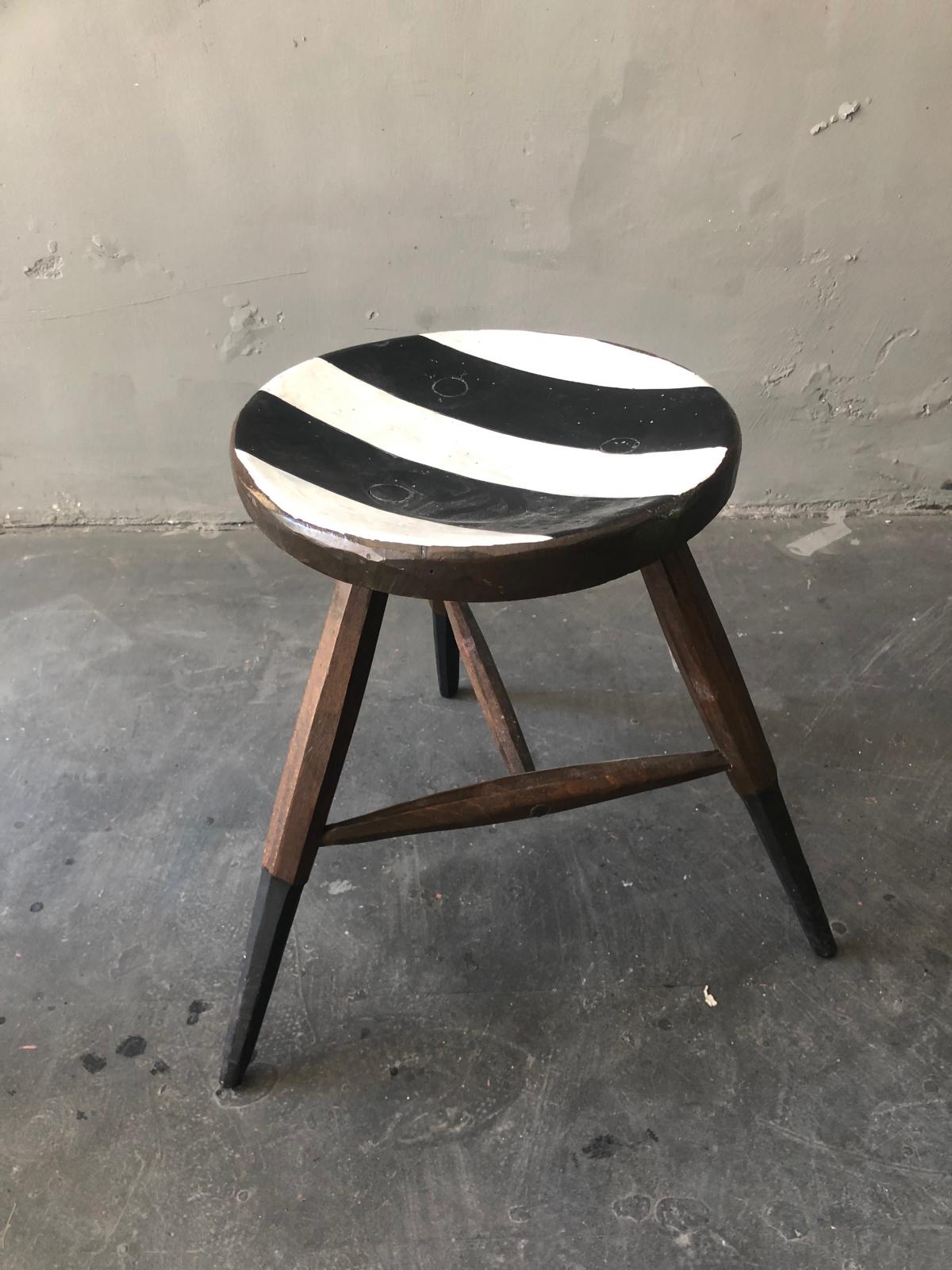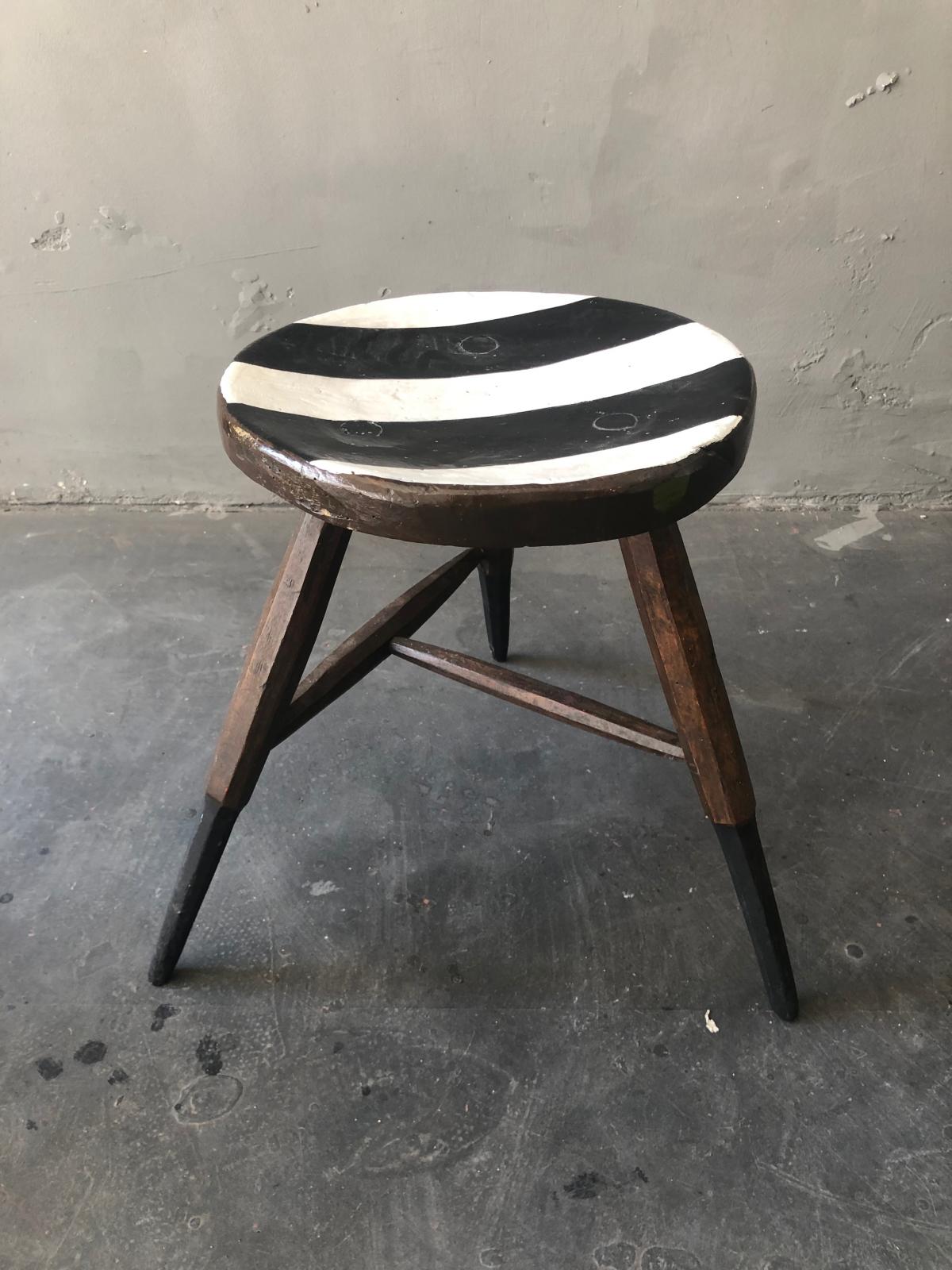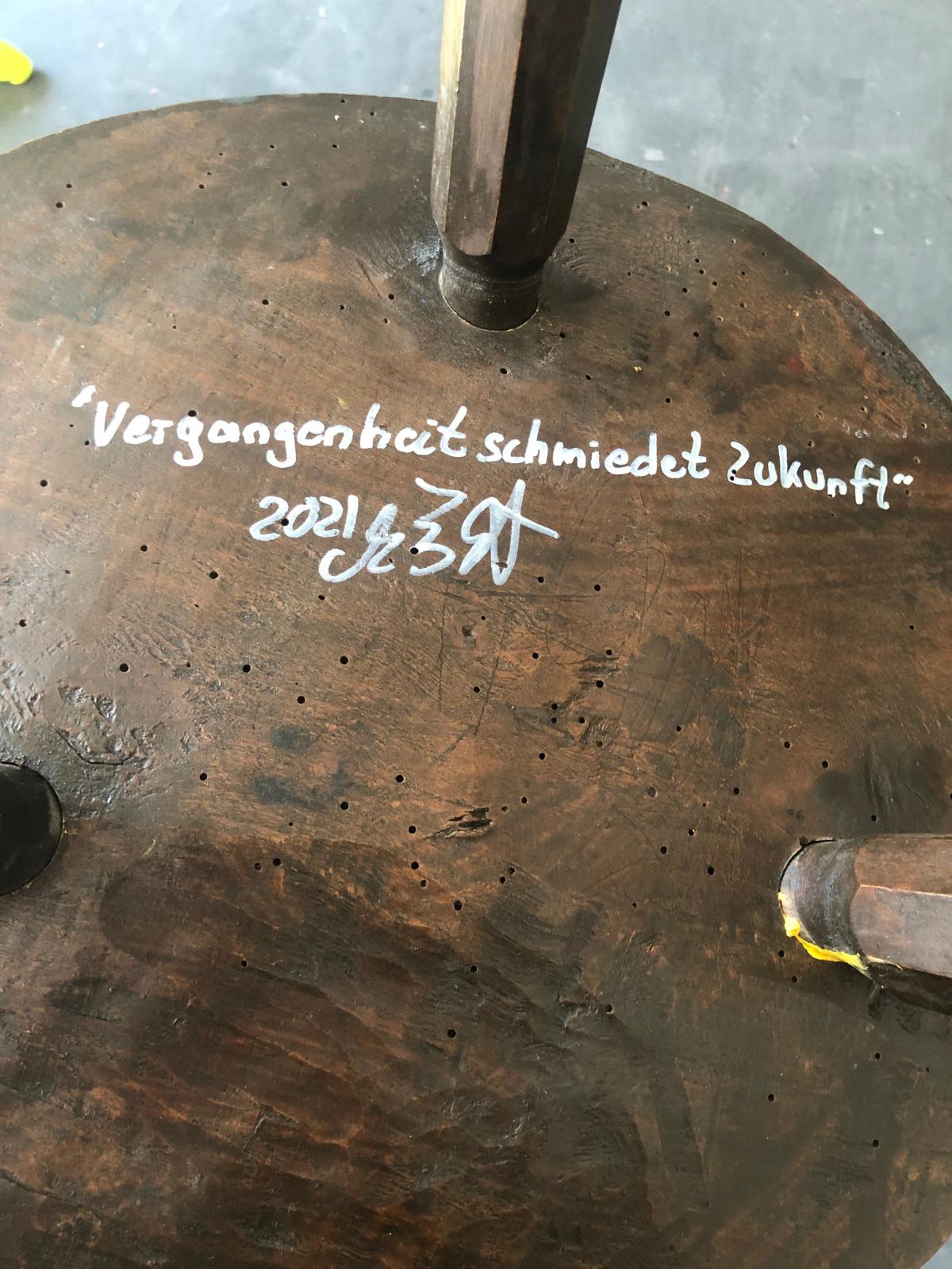 Vergangenheit schmiedet Zukunft Stool Ancient Farmstool, re-formed, hand-painted, lacquered in french violine lacquer Origin Bavaria Year 2021 State Sold Price PreviousNext