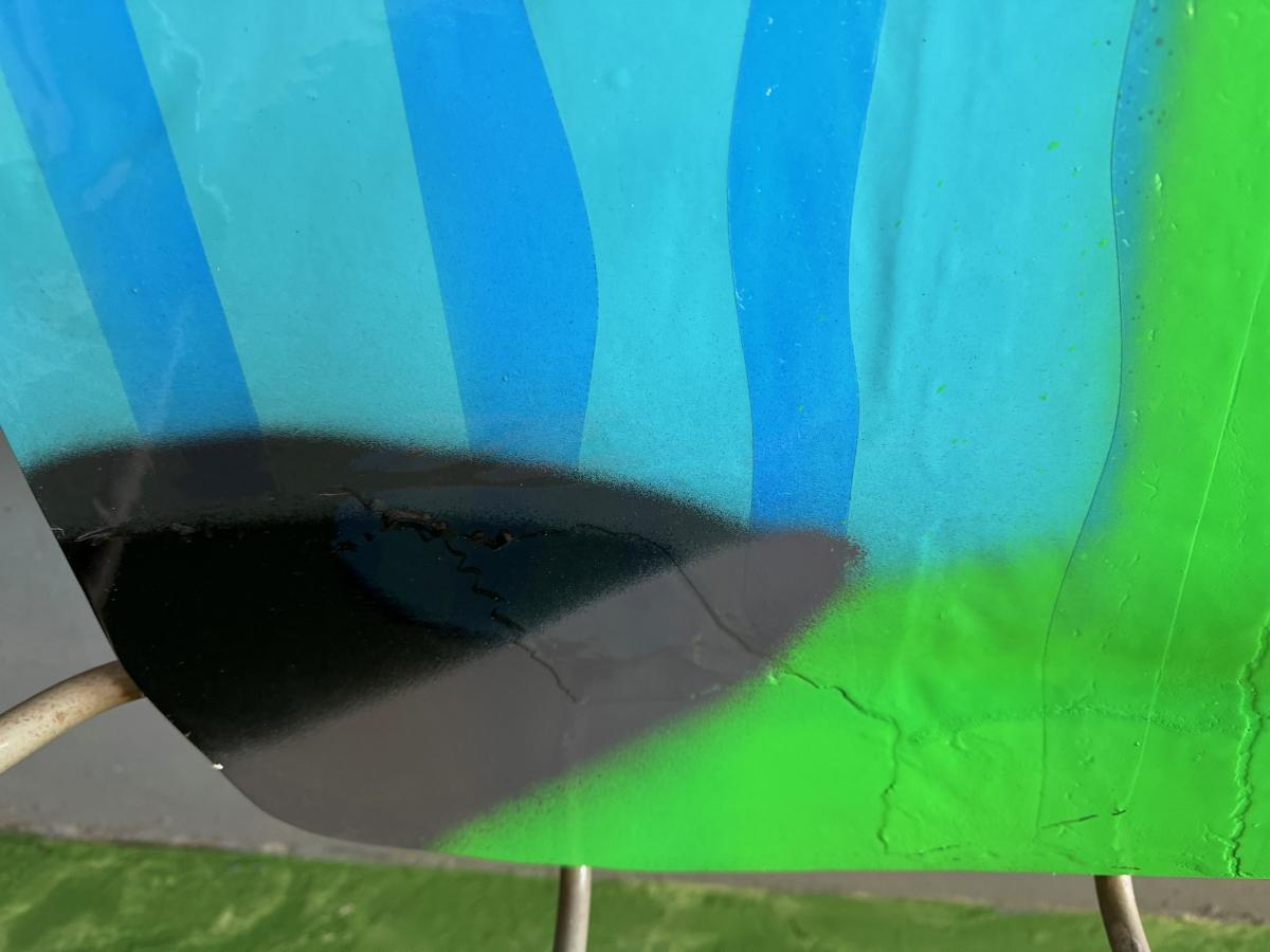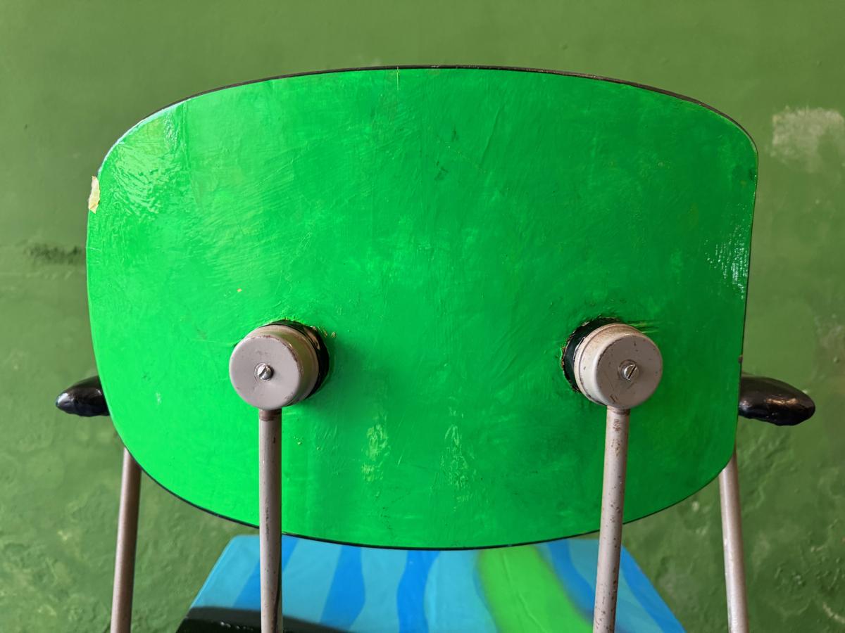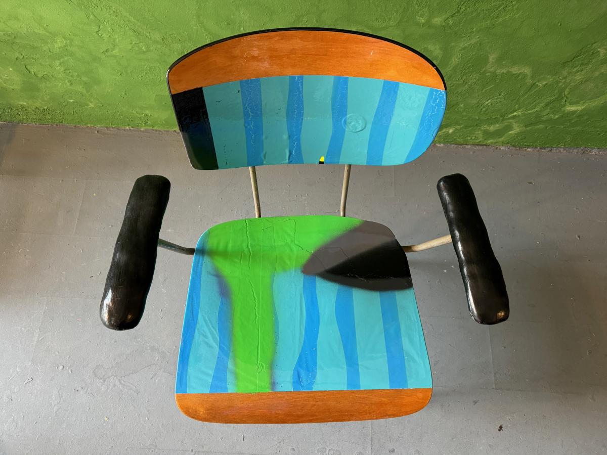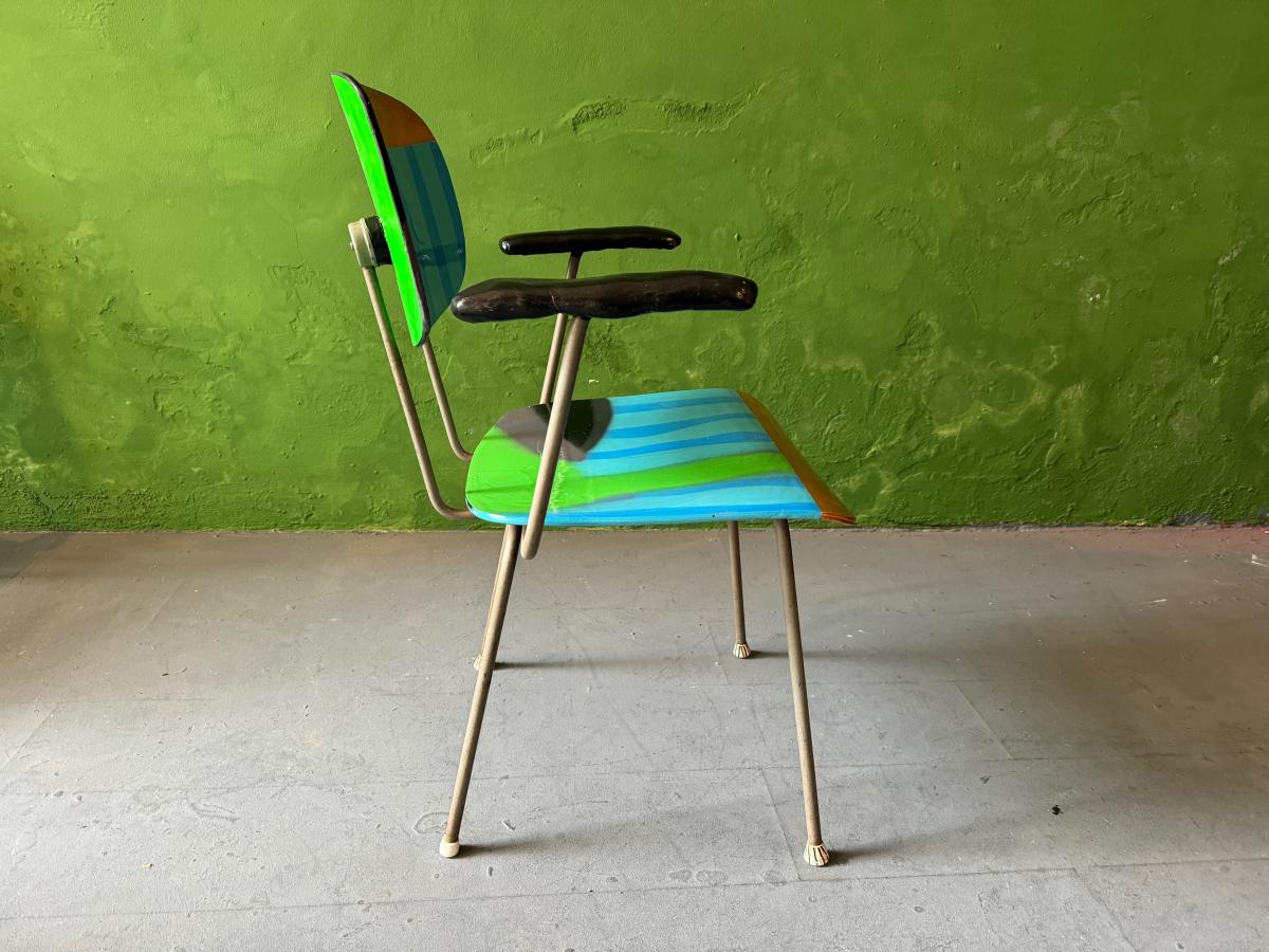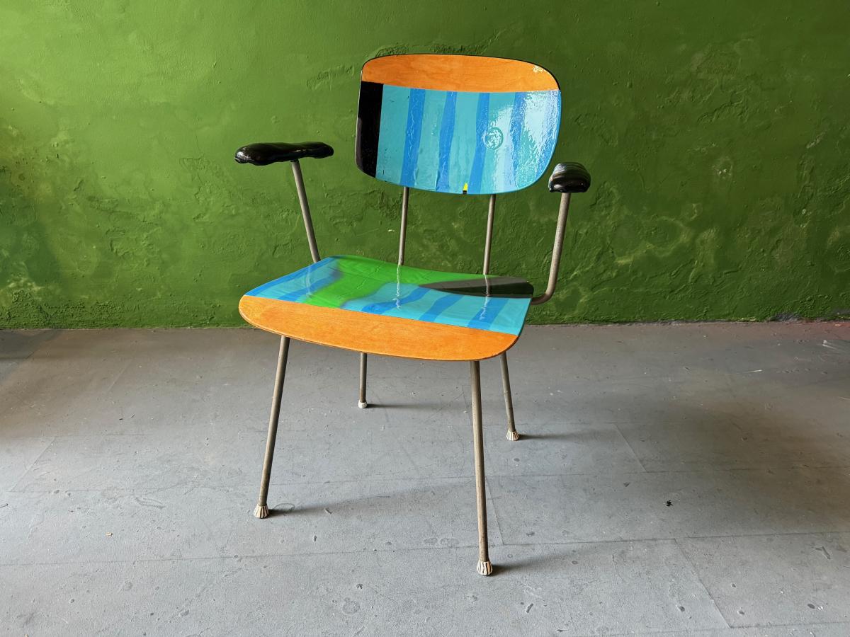 Wim Rietveld Classic chair contemporized, Porcelain armrests, cut, spray painted and multi-lacquered with 2k varnish